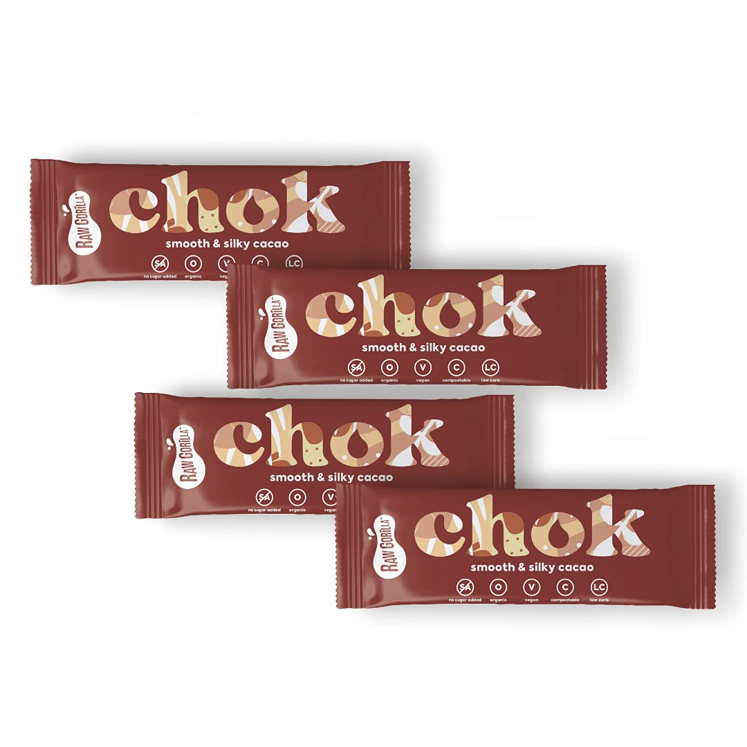 Raw Gorilla Raw Gorilla Silky Smooth Cocoa Chok | 4 Pack Gluten Free Snacks | Keto Chocolate | No Added Sugar | Vegan Snacks | Organic | Sugar Free Chocolates | Nut Free | Healthy Snacks
