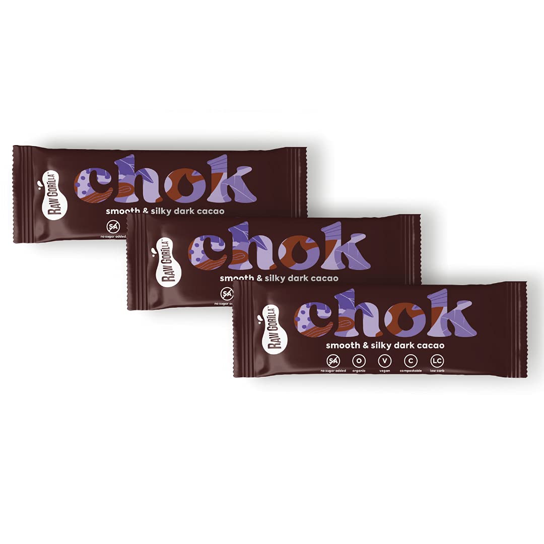Raw Gorilla Raw Gorilla Smooth & Dark Cacao Chok | 3-Pack Gluten-Free Snacks | Keto Chocolate | No Added Sugar | Vegan Snacks | Organic | Sugar-Free Chocolates | Nut-Free | Healthy Snacks