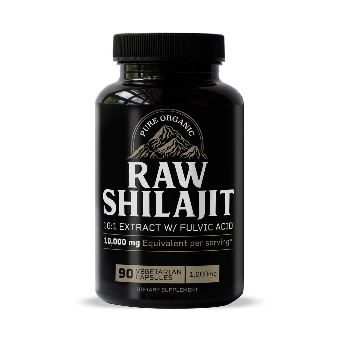 Raw Shilajit Capsules for Men | 10 000mg Pure Himalayan Shilajit with Fulvic Acid & Trace Minerals | Natural Energy Focus & Immune Support | 90 Ct