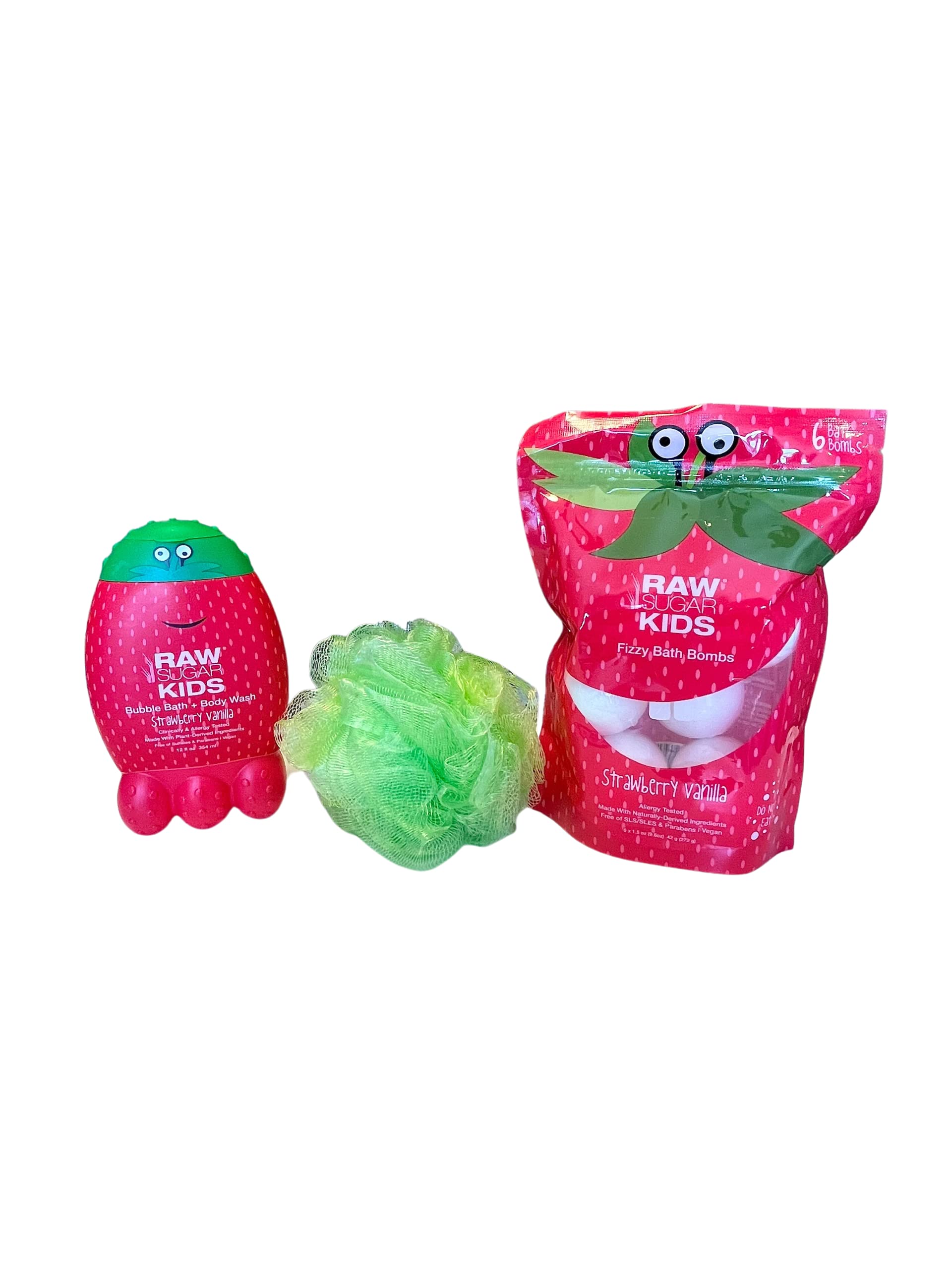RAW Sugar Kids Bubble Bath and Body Wash Bundle: 2 Watermelon Lemonade (12 oz. ea.) + Pink Loofah