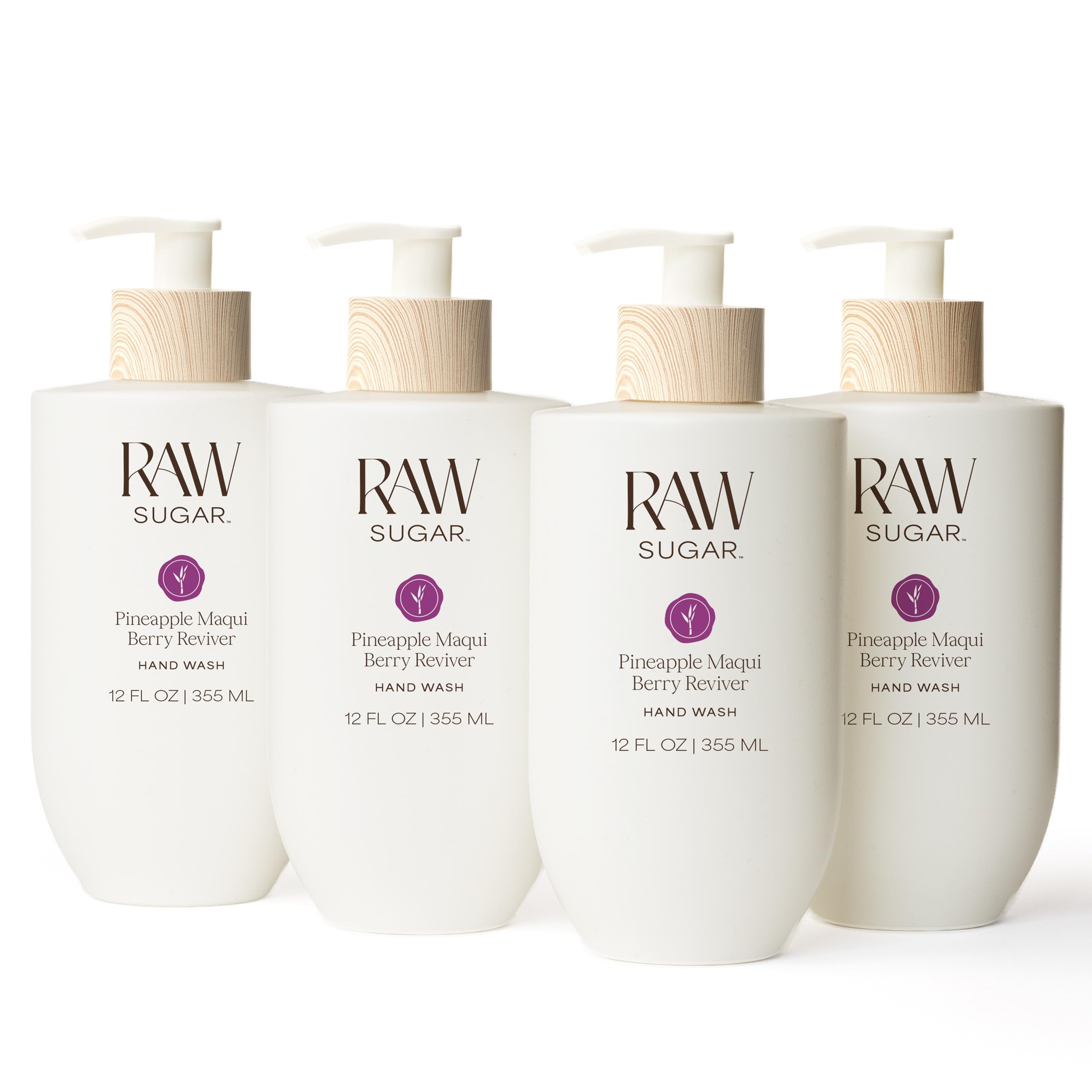 " Raw Sugar Pineapple Maqui Berry Reviver Hand Wash Trio (Pack of 3) Start every moment with the simple luxury of clean, nourished hands. Raw Sugar Pineapple Maqui Berry Reviver Hand Wash is crafted to deliver a gentle yet deeply nourishing cleanse. Infused with brightening Niacinamide, exfoliating Pineapple extract, hydrating Coconut extract, and antioxidant-rich Maqui Berry extract, this hand wash pampers your skin while effortlessly cleansing. Transform your day with a burst of hydration and a tangy, uplifting scent that leaves your hands feeling refreshed and rejuvenated. This gentle formula cleanses and revitalizes your hands. Ideal for busy households, offices, or kitchens, each drop works to hydrate, smooth, and protect, ensuring your skin feels soft and cared for after every wash. All Raw Sugar products are formulated without SLS SLES, parabens, phthalates or silicones and are PETA-certified animal test-free and vegan. Explore Raw Sugar's range of body and hair products that sweeten your day and make your ordinary moments feel brighter. "Real Life, Made Sweeter: Raw Sugar makes products that keep you refreshingly clean, smelling good and feeling even better. In a world that's raw and real (and beautiful because of it), we're here to shift the mood, lift the moment, and help you find life's sweet spot. Perfect for Dry Hands: This hand wash gently cleanses skin without stripping moisture. Whether used at home, in the kitchen, or the office, it provides a hydrating cleanse that cares for your hands daily. Nourishing Ingredients for Healthier-Looking Skin: Infused with Niacinamide, Coconut, and Pineapple extracts, delightfully fragranced with a tangy, happy, creamy scent. This liquid soap ensures clean, hydrated hands that feel pampered refreshed. Gentle Cleansing with a Refreshing Touch: Transform your daily handwashing experience with this moisturizing hand soap. Cleanses and refreshes skin without stripping its natural moisture, leaving hands soft and protected after every wash.