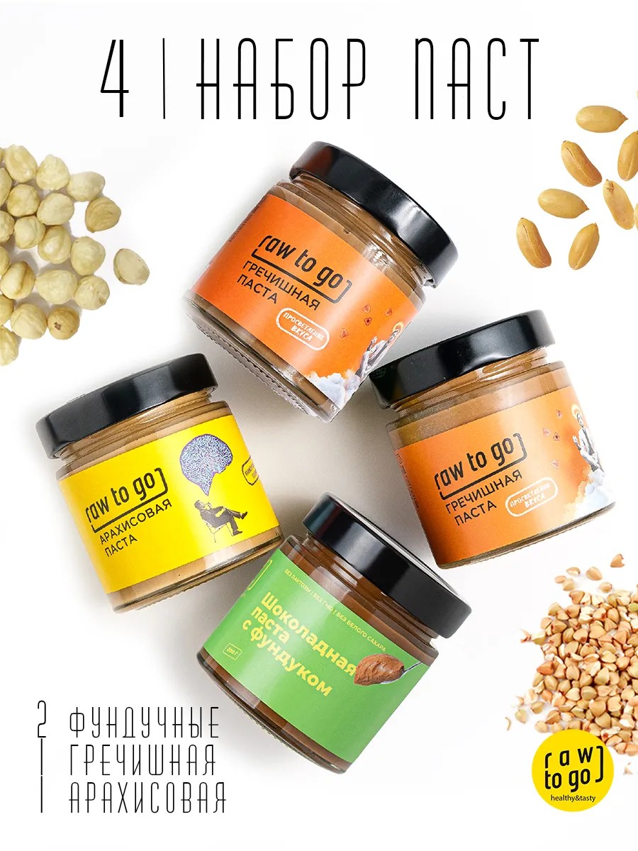 В набор паст 4 шт* входит: 2 шт гречишной, 1 фундучная, 1 арахисовая.