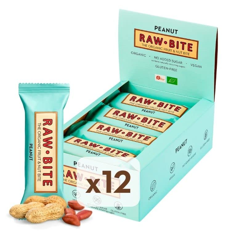 The interior counts: best ingredients, best recipes, best taste - this is what depends on Rawbite!Produced in Denmark and in the Netherlands, nutrient -rich healthy healthy snacks are created for everyone who knows what is good!.Special advantage: A sales unit Rawbite Riegel contains 12 power bars of 50 g.Perfect for on the go: fitnessUniversityOfficeLate or ""hangry""The nutritious protein bars fit into every pocket and are the ideal companion for the small hunger in between.Also: No matter how the weather is, the vegan bars keep their shape and crumble or melt.VEGANABSOLUTELY!The Rawbite protein bar is available in 9 tempting variations.From sweet to salty to fresh and fruity, there is something for every taste!100 vegan, gluten -free and without any sugar additives (contains naturally sugar).9 delicious varieties - you have the choice!Whether fresh lime, winter apple cinnamon, chocolate cocoa, soft cashew, summer coconut, bitter sweet orange cocoa, salty peanut or fruity vanilla beries.And for the fitness lovers among us there is the protein variant with fruits nuts.DAS INNERE ZÄHLT: Beste Zutaten, beste Rezepturen, bester Geschmack – Darauf kommt es bei RAWBITE an! Produziert in Dänemark und in den Niederlanden entstehen nährstoffreiche gesunde Snacks für jeden, der weiß was gut ist!. VORTEILSPACK: Eine Verkaufseinheit RAWBITE Riegel enthält 12 Power Riegel à 50 g. PERFEKT FÜR UNTERWEGS: FitnessUniOfficeSpät dran oder "hangry"Die nahrhaften Eiweißriegel passen in jede Tasche und sind der ideale Begleiter für den kleinen Hunger zwischendurch. Außerdem: Egal wie das Wetter ist, die veganen Riegel behalten ihre Form bei und krümeln bzw. schmelzen nicht. VEGANABSOLUT! Die RAWBITE Proteinriegel gibt es in 9 verlockenden Variationen. Von süß bis salzig bis hin zu frisch und fruchtig, da ist für jeden Geschmack was dabei! 100 vegan, glutenfrei und ohne jegliche Zuckerzusätze (enthält von Natur aus Zucker). 9 LECKERE SORTEN – DU hast die Wahl! Ob frische Limette, winterlicher Apfel-Zimt, schokoladiger Kakao, weiche Cashew, sommerliche Kokosnuss, bittersüße Orange-Kakao, salzige Erdnuss oder fruchtige Vanilla-Berries. Und für die Fitness-Liebhaber unter uns gibt es die Protein-Variante mit Früchten Nüssen.RAWBITE PEANUT in der 12er Box - Vegan, glutenfrei ohne Zuckerzusatz (enthält von Natur aus Zucker) – Bio Frucht-Nuss-Riegel mit Erdnüssen (12 x 50 g) Single Erdnüsse 12 Stück (1er Pack)