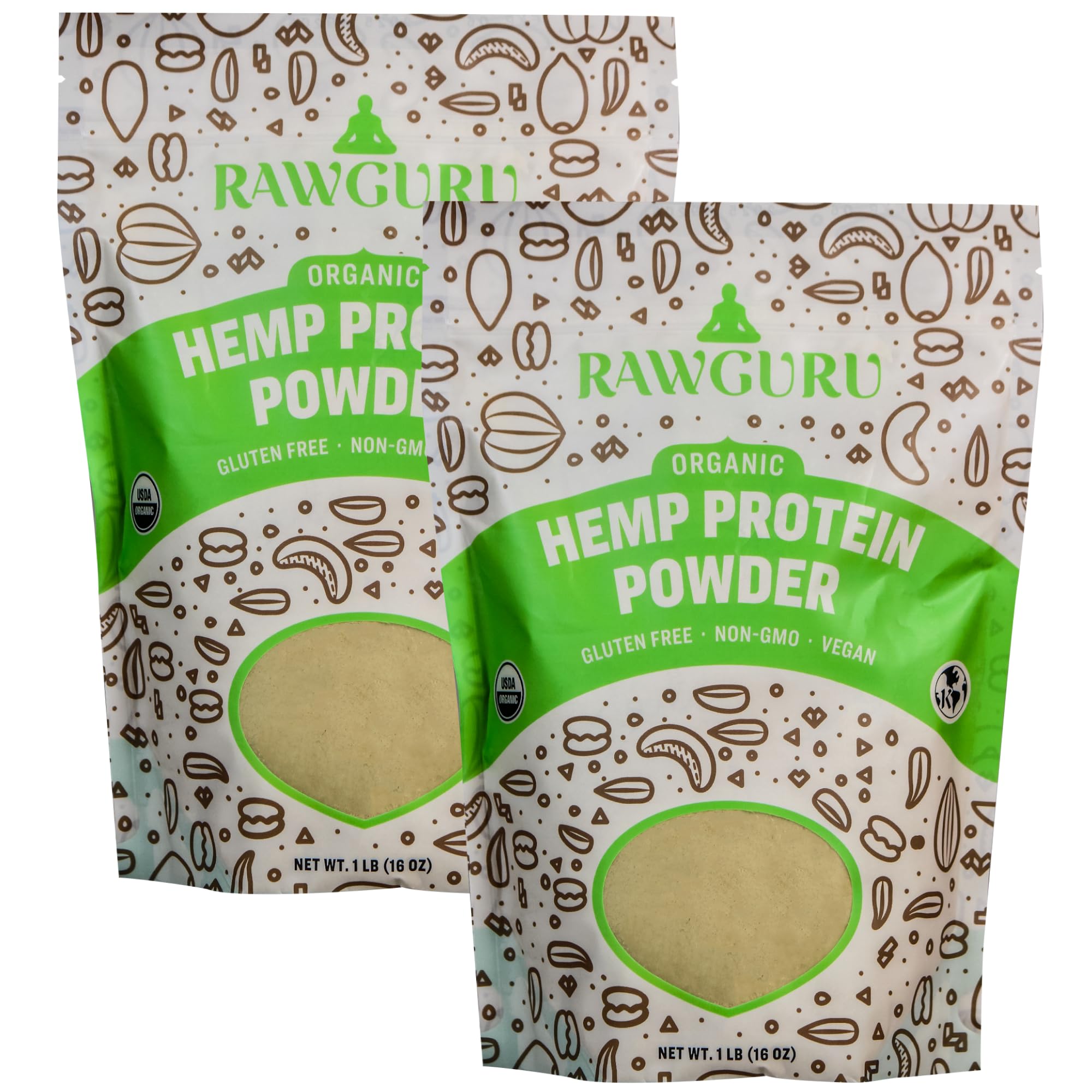 RawGuru Hemp Protein Powder - 16 oz (Pack of 2) - USDA Organic | Gluten-Free | Non-GMO | Vegan | Kosher | Plant Protein with Essential Amino Acids 1 Pound (Pack of 2)