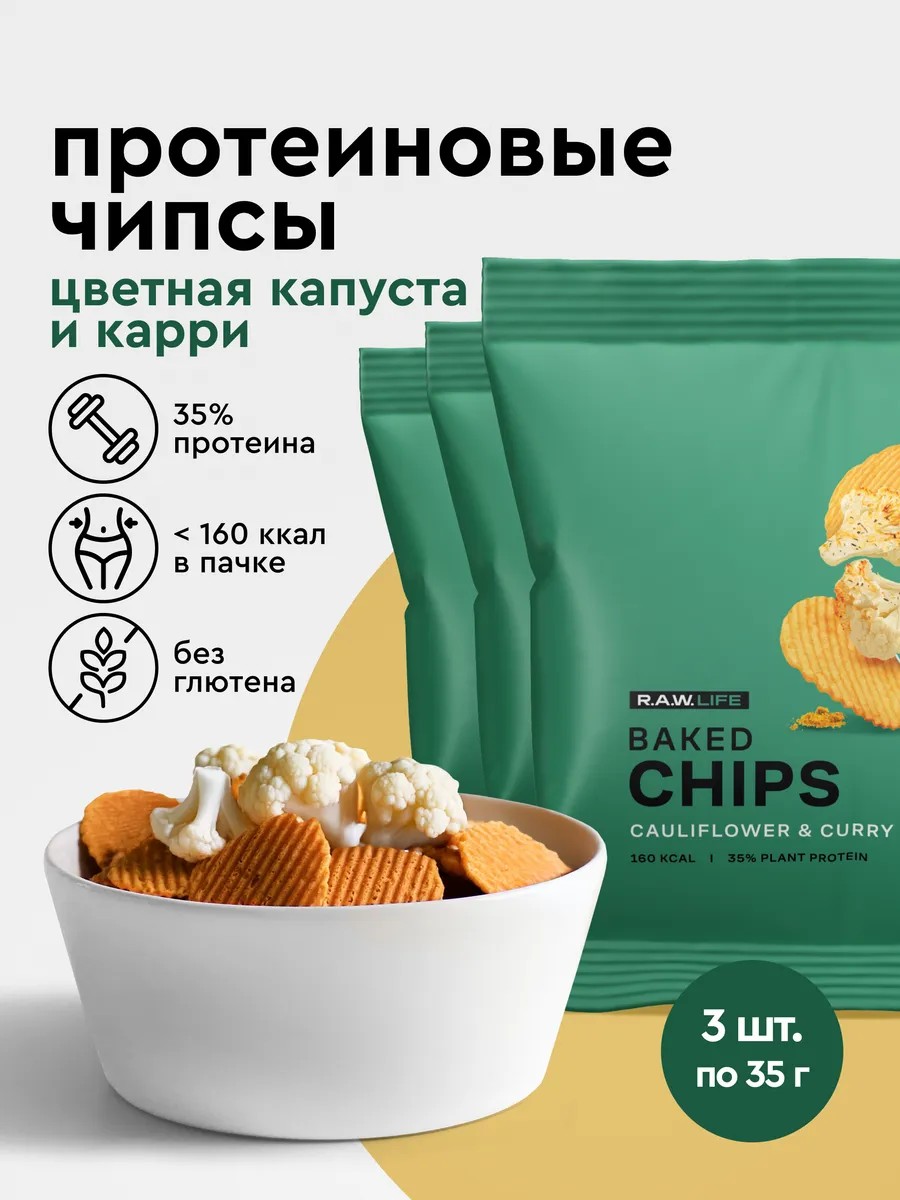Протеиновые чипсы R.A.W. LIFE Baked CHIPS со вкусом цветной капусты и пикантного карри это отличный выбор для здоровой закуски. Изготовленные без жарки, они содержат высокое содержание белка и имеют низкое содержание жиров. Благодаря интересному сочетанию вкуса с нотками востока они станут отличным дополнением к вашему здоровому образу жизни, который поможет разнообразить ваш рацион новыми вкусовыми ощущениями. В нашей R.A.W. LIFE линейке чипсов протеиновых Baked CHIPS есть 4 вкуса, которые смогут удовлетворить предпочтения каждого гурмана: "Лук Порей", "Прованские Травы", "Паприка и Томаты", "Цветная капуста и Карри", а также набор из ассорти вкусов.