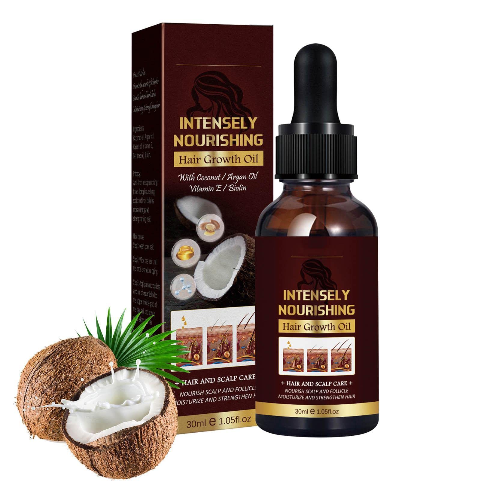 Huile de croissance des cheveux à la noix de coco, huile naturelle pour la repousse des cheveux de 30 ml pour les femmes hommes - Nutrition Produits capillaires pour améliorer la santé des cheveux