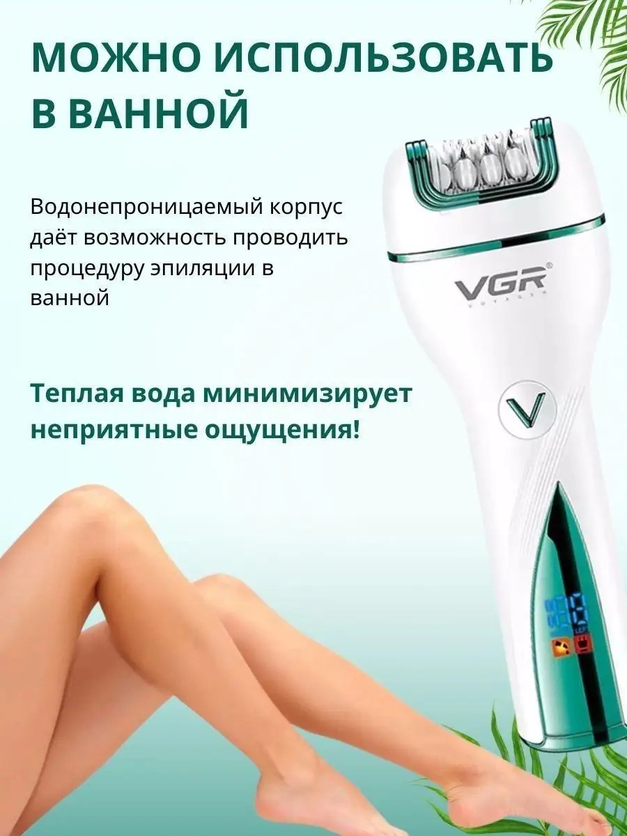 The VGR V-728 3-in-1 cordless and rechargeable women's epilator, facial electric epilator, hair removal depilator, women's razor, women's shaving trimmer, leg and body hair removal, 18 tweezers with a charging indicator, white and blue. This VGR V-728 epilator is designed to remove unwanted hair for up to 4 weeks! This women's electric epilator is designed for both dry and wet epilation. Apply shower gel or liquid soap to the discs or mesh; the discs rotate to create foam, resulting in a smooth glide. This electric epilator operates on both mains and battery power. Depilation with a shaving epilator is the optimal option for removing unwanted body hair. The device is always at hand, requires no special preparation before use, and requires no additional costs other than the price. The principle of operation of the body trimmer is as follows: several pairs of metal discs rotate and, when touching, grab the hairs like tweezers, removing them by the root. Characteristics of the women's epilator: Body material: plastic; Tweezers coating material: metal; Battery charging time: 90 min; Operating time: 60 min; Number of tweezers: 18; Speeds: 1; Power: 5 W; Power supply: battery and mains; Dimensions: 16x6x3 cm Weight: 135 g. Package contents: Epilator - 1 pc, USB cable - 1 pc, Attachments - 3 pcs, Cleaning brush - 1 pc, Instructions - 1 pc, Box - 1 pc. How to use: Inspect the areas where treatment is planned. Please note that you cannot epilate areas with convex moles, warts, as well as with noticeable spider veins and protruding veins. For these areas, it's best to use a different method, such as an electric razor or trimmer, which may come with an attachment. If you've recently had hair removal, wait a couple of days for the hairs to grow back to a sufficient length, about 3 mm on average. Otherwise, the device will have difficulty grasping stubble, and the hair removal procedure will take longer. If the hairs are too long, they should be trimmed or trimmed to 5 mm. Otherwise, the pain may be greater, and the women's epilator will rip the hairs without removing the roots. It's recommended to take a bath and steam your skin at least 1 hour before shaving, then apply a scrub or massage thoroughly with a hard washcloth. These steps will improve the quality of the epilation. If you plan to epilate your underarms and bikini area, treat these areas with an alcohol solution or skin antiseptic. You should also completely wipe the head of the electric women's epilator. To ensure a good adhesion of the bikini epilator to the hair, dust the skin with baby powder. This will not only thicken the epilator but also absorb excess moisture and sebum.