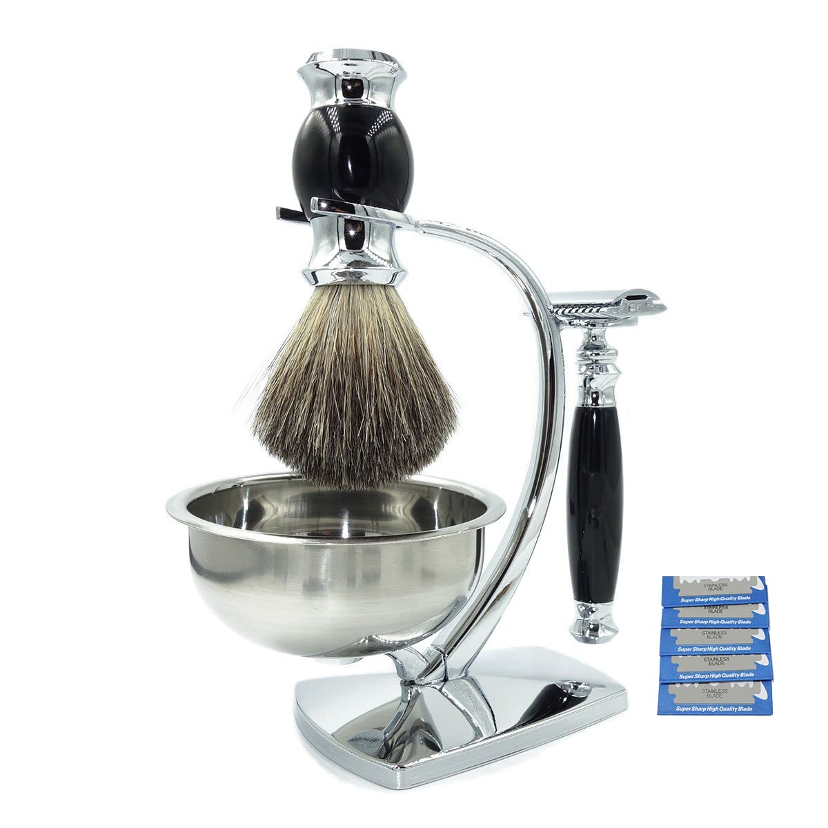 The shaving brush holder holds shaving brushes and razors and thus ensures order in their shaving utensils.As a care set for men, it is the perfect gift for family and friends.Suitable for most razors, but it is strongly recommended to measure your razor before buying. Product name: razor brush Material: acrylic stainless steel roof hair Gender Male Article type: razor Size: 15 x 9.5 x 20 cm Color: shiny chrome black Razor length: 12 cm Weight of the razor: 77 g Shaving brush length: 12 cm Weight of the shaving brush: 94 g Size of the shaving stand: 9 x 7 x 15 cm Weight of the shaving stand: 240 g Size of the shaving bowl: 9.5 x 9.5 x 4 cm Weight of the shaving shell: 54 g Size of the entire set: 15 x 9.5 x 20 cm Total weight: 460 g Service content: Due to different measurement tools and methods, the data size error is 1 to 3 cm.Please understand. All of our products are accepted in the form of benefits in kind.This is usually a small difference in color, which is caused by the difference between the light and the monitor when taking pictures.This product is durable, does not take up a place, is easy to use, is easy to pick up and take off and make your life exquisite.Luxurious stainless steel stand, durable, simple and practical, fully equipped, perfect size.Dachshaar brush, no smell.It dries quickly and is perfect for travel or at home.Practical frame with a stable construction and simple access to the brush.This universal holder with its sophisticated and stylish design fits most brush and razor models and is therefore the perfect gift for men.The refined and elegant design feels pleasant and is practical, just a work of art!.The bowl made of high -quality stainless steel is durable, exquisite and fashionable, with a perfect sheet size, smooth polish, strong quality feeling and bright shine.Der Rasierpinselhalter hält Rasierpinsel und Rasierer und sorgt so für Ordnung in Ihren Rasierutensilien. Als Pflegeset für Männer ist es das perfekte Geschenk für Familie und Freunde. Passend für die meisten Rasierer, es wird jedoch dringend empfohlen, Ihren Rasierer vor dem Kauf zu messen. Produktname: Rasierpinsel Material: Acryl Edelstahl Dachshaar Geschlecht männlich Artikeltyp: Rasiermesser Größe: 15 x 9,5 x 20 cm Farbe: Glänzendes Chrom Schwarz Rasiererlänge: 12 cm Gewicht des Rasierers: 77 g Rasierpinsellänge: 12 cm Gewicht des Rasierpinsels: 94 g Größe des Rasierständers: 9 x 7 x 15 cm Gewicht des Rasierständers: 240 g Größe der Rasierschale: 9,5 x 9,5 x 4 cm Gewicht der Rasierschale: 54 g Größe des gesamten Sets: 15 x 9,5 x 20 cm Gesamtgewicht: 460 g Serviceinhalt: Aufgrund unterschiedlicher Messwerkzeuge und -methoden beträgt der Datengrößenfehler 1 bis 3 cm. Bitte haben Sie Verständnis. Alle unsere Produkte werden in Form von Sachleistungen angenommen. Dies ist normalerweise ein kleiner Farbunterschied, der durch den Unterschied zwischen dem Licht und dem Monitor beim Fotografieren verursacht wird.Dieses Produkt ist langlebig, nimmt keinen Platz ein, ist einfach zu bedienen, lässt sich leicht aufnehmen und ablegen und macht Ihr Leben exquisiter. Luxuriöser Edelstahlständer, langlebig, einfach und praktisch, voll ausgestattet, perfekte Größe. Dachshaarbürste, kein Geruch. Es trocknet schnell und eignet sich perfekt für Reisen oder zu Hause. Praktischer Rahmen mit stabiler Konstruktion und einfachem Zugang zur Bürste. Dieser Universalhalter mit seinem raffinierten und stilvollen Design passt auf die meisten Bürsten- und Rasierermodelle und ist somit das perfekte Geschenk für Männer. Das raffinierte und elegante Design fühlt sich angenehm an und ist praktisch, einfach ein Kunstwerk!. Die aus hochwertigem Edelstahl gefertigte Schüssel ist langlebig, exquisit und modisch, mit perfektem Bogenmaß, glatter Politur, starkem Qualitätsgefühl und hellem Glanz.Rasiererhalter, praktischer Luxus-Rasierbürstenständer, Geschenkset for Herren-Doppelklingenrasierer, Seifenschale, Dachshaarbürstenständer, Halter, Rasierset 9.5x15cm Silver