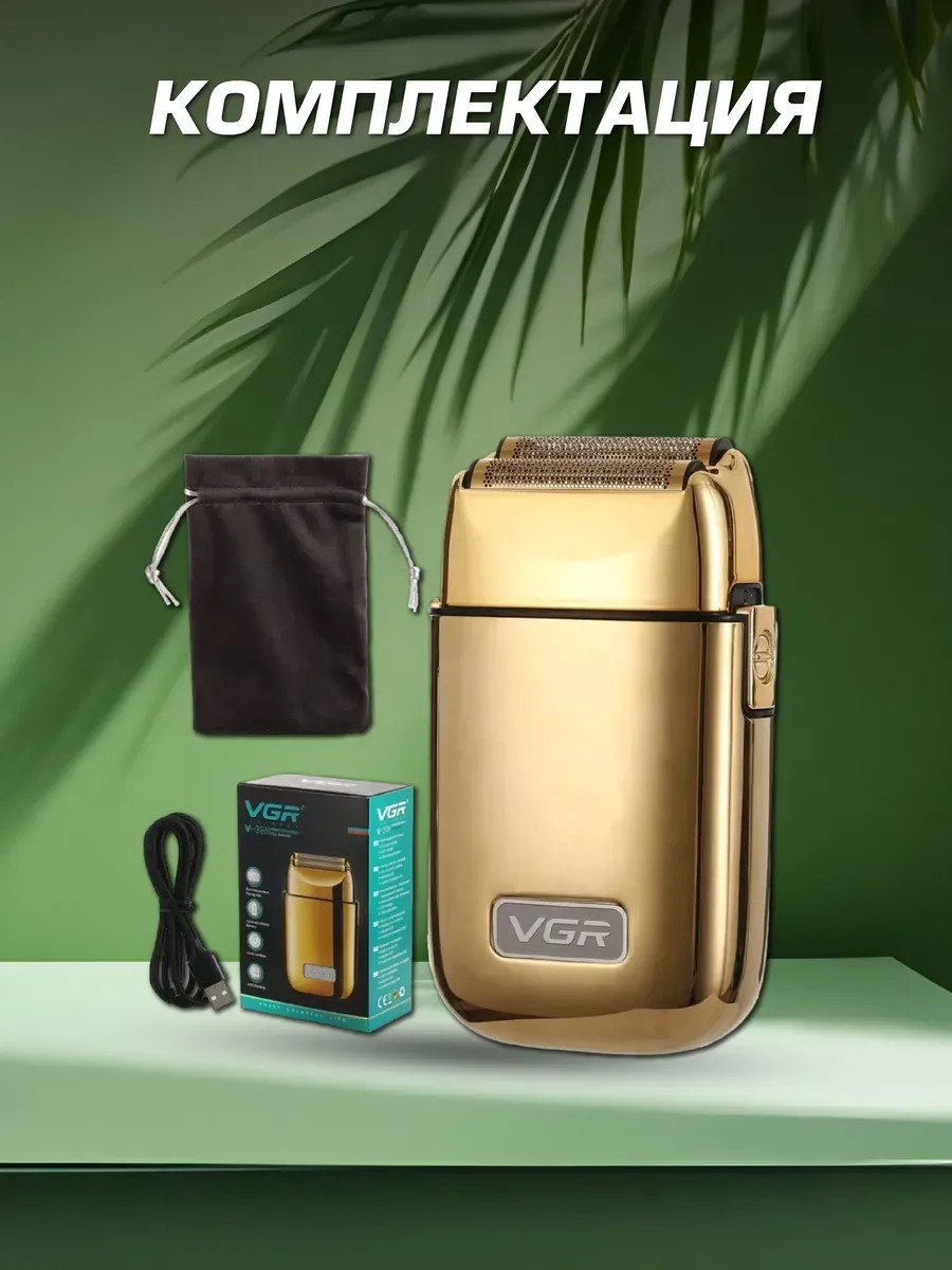 Электробритва VGR V-398 — беспроводная бритва электрическая, которая станет отличным выбором для любого мужчины. С насадками из нержавеющей стали и элегантным золотым дизайном, она сочетает в себе стиль и функциональность. Технические характеристики: - Напряжение: 100-240 В, мощность: 5 Вт. - Время использования: до 120 минут, время зарядки — 2 часа. - USB-зарядка, что делает её удобной в поездках. Особенности: - Низкий уровень шума и бережное отношение к коже. - Вращающаяся режущая головка с эластичной конструкцией для легкой очистки от остатков волос. - Комплектация включает USB-кабель, защитную крышку и щеточку для чистки. Эта электробритва мужская идеально подходит как для стрижки, так и для аккуратного бритья.