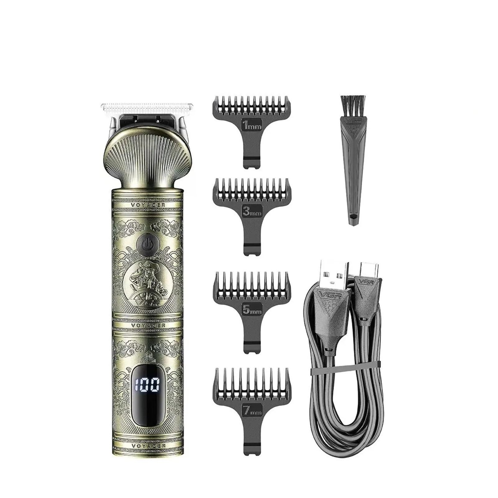 Razors Design Metal Beard USB Charging Barber Trimmer Professional Cordless Hair Clipper Rechargeable LED Displa for Men V-962