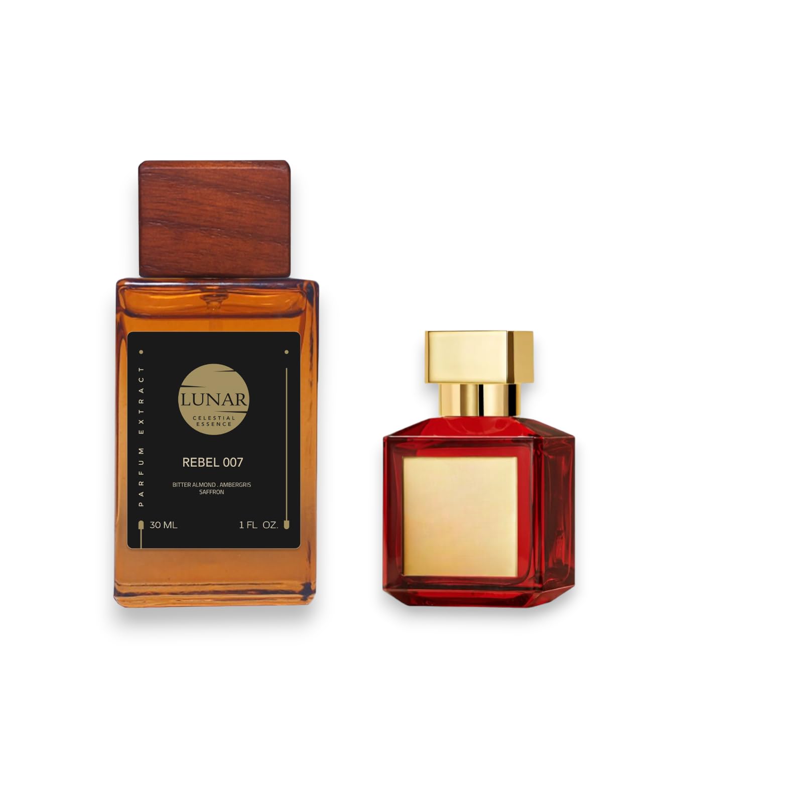 The rouge 7 comes at you with a style fragrance, (Oh yes this is what James smells like). Sexy, Sweet, Attractive, Manly. Rbl 07 is your secret weapon in this game. Bitter Almond, Luxurious Ambergris, Exotic Saffron, Sweet Jasmine, and Manly Woods make up this fine fragrance. Rbl is a sophisticated and everpresent. It will stick with you all day and night like a good sidekick. This beauty will not self-destruct in 10 seconds, but it will attract those around you in 5. Being a scent that will always receive compliments is one of the main reasons why people fawn over Baccarat Rouge so much. The feeling you get when somebody comments on your perfume is uplifting and poignant. Not only does it affirm your own personal tastes, but fragrance is invisible, so it implies close observation Bitter Almond, Ambergris, Saffron, Egyptian Jasmine, Musk, Woods, Cedar Baccarat Rouge 540 ExtraitPERFECT GIFT: With its versatile nature, Our fragrances suits a wide range of tastes, making it ideal gift for a friend, family member, or colleague. PURE QUALITY, CHEMICAL FREE FORMULATION: Our chemical-free perfume oils are hypoallergenic and won't irritate skin. These all-natural, hand-crafted perfumes oil are safe for all and feature expertly curated fragrance notes. The products do not cause allergic reactions, are 100% safe, and even act as a disinfectant. VERSATILE FRAGRANCE SUITABLE FOR EVERYONE: this unisex fragrance is a versatile and captivating scent that can be enjoyed by anyone for any occasion. The combination of perfect ingredients makes it a one-of-a-kind experience that is both alluring and memorable. PERFUME INGREDIENTS COMBINATION: We’ve designed Baccarat Rouge 540 Extrait a truly Assertive Addictive unisex perfume with perfect top Notes of Egyptian Jasmin & Saffron for a rich, sweet floral scent with subtle spice. Middle Notes of Bitter Almond and Ambergris provide a warm, earthy aroma with sophisticated nuttiness. Base Notes of Cedar Wood brings a fresh, sweet, and woody aroma with Musk that Imparts a seductive allure. ROUGE RBL STYLE FRAGRANCES: Our Rouge Rbl 7 Fragrance comes at you with a style. Get the vibe with Rouge Rbl 007! It's sexy, sweet, and manly – your secret weapon for a captivating scent.
