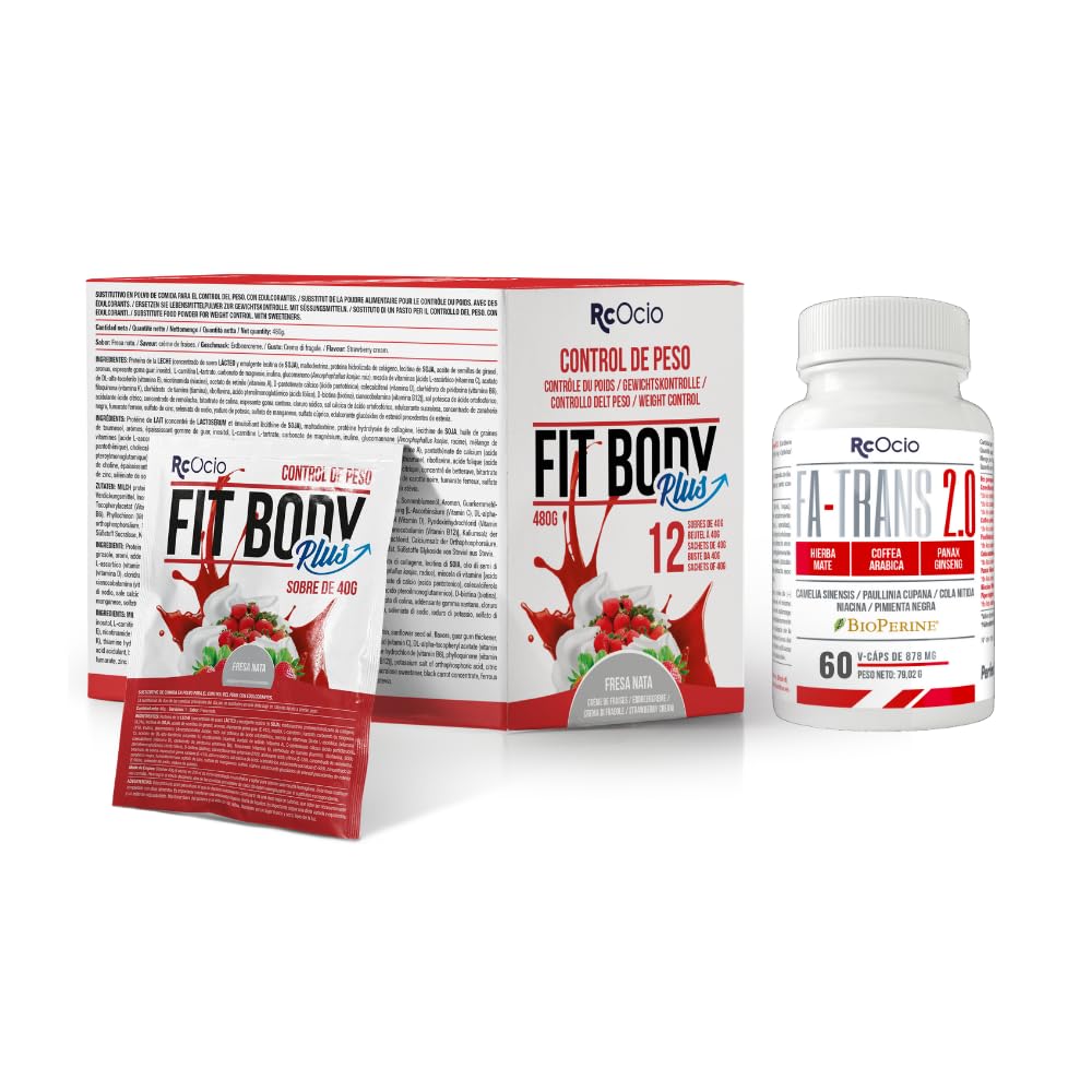 FIT BODY 2 in 1, complete meal replacement for weight loss with collagen and vitamins. Ideal as a food replacement for weight loss or used all year round as a supplement to control our weight, ensure we get all the necessary nutrients and care for our joints, with a balanced diet. Fit Body is the most complete diet shake on the market and is low in calories, 155 kcal estimated intake. Hydrolyzed collagen, magnesium and vitamin C. Rich in protein about 40 . With all the nutrients you need. Losing weight has never been easier. Lose weight comfortably, you only need to replace 1 or 2 meals per day, depending on the speed at which you want to lose weight. With fiber to regulate your intestinal tract and satiate us. With 50 of the NRV in vitamins and 40 of the NRV in minerals. Only 5 sugars and less than 3 saturated fat. With L-Carnitine, Choline and Inositol, which also help us lose weight. The biggest advantages of Black Line - FA Trans are: Destroys fat without losing muscle mass. Use your fat as an energy source. More strength and less fat without losing muscle mass FA TRANS from Perfect Nutrition prevents the formation and accumulation of fatty tissue. It is a thermogenic formula designed for athletes who want to burn fat deposits to the maximum while maintaining muscle mass, it eliminates excess weight by increg the mobilization and combustion of fats because it promotes their use as an energy source. How to use: Take two capsules, one on an empty stomach and one in the afternoon. Take a maximum of 4 capsules (2 and 2). Presentation: pack of 90 capsules.Afslankpakket : Maaltijdvervangende shake thermogene vetverbrandende dieet shake voor mannen en vrouwen (aardbei, 1Kg) (Chocolade 480GR) (Aardbei 480 gr) GESCHIKT LICHAAM 2 in 1, complete maaltijdvervanging om af te vallen met collageen en vitamines. Ideaal als voedselvervanger om af te vallen of het hele jaar door als supplement te gebruiken om ons gewicht onder controle te houden, ervoor te zorgen dat we alle noodzakelijke voedingsstoffen binnenkrijgen en onze gewrichten te verzorgen, met een uitgebalanceerd dieet. Fit Body is de meest complete dieetshake op de markt en bevat weinig calorieën, 155 kcal geschatte inname. Gehydrolyseerd collageen, magnesium en vitamine C. Rijk aan proteïne ongeveer 40 . Met alle voedingsstoffen die je nodig hebt. Afvallen was nog nooit zo eenvoudig. Comfortabel afvallen, u hoeft slechts 1 of 2 maaltijden per dag te vervangen, afhankelijk van de snelheid waarmee u wilt afvallen. Met vezels om je darmkanaal te reguleren en ons te verzadigen. Met 50 van de NRV aan vitamines en 40 van de NRV aan mineralen. Slechts 5 suikers en minder dan 3 verzadigd vet. Met L-Carnitine, Choline en Inositol, die ons ook helpen af te vallen. De grootste voordelen van Black Line - FA Trans zijn: Vernietigt vet zonder spiermassa te verliezen. Gebruik je vet als energiebron. Meer kracht en minder vet zonder spiermassa te verliezen FA TRANS van Perfect Nutrition voorkomt de vorming en ophoping van vetweefsel. Het is een thermogene formule die is ontworpen voor atleten die vetophopingen maximaal willen verbranden met behoud van spiermassa, het verhelpt overgewicht door de mobilisatie en verbranding van vetten te verhogen omdat het het gebruik ervan als energiebron bevordert. Hoe te gebruiken: Neem twee capsules, één op een lege maag en één 's middags. Neem maximaal 4 capsules (2 en 2). Presentatie: verpakking van 90 capsules.