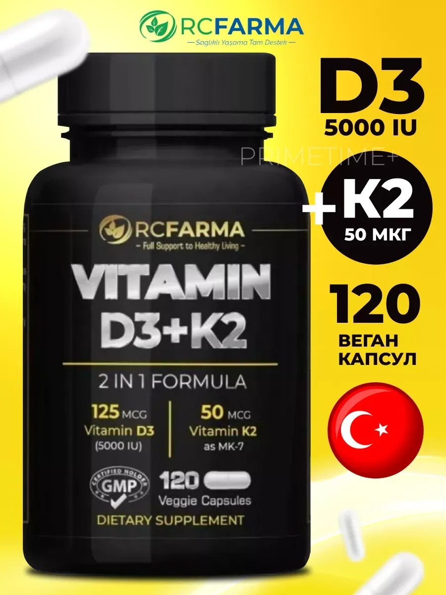 RCFARMA Витамин D3+K2 5000 мг для иммунитета
