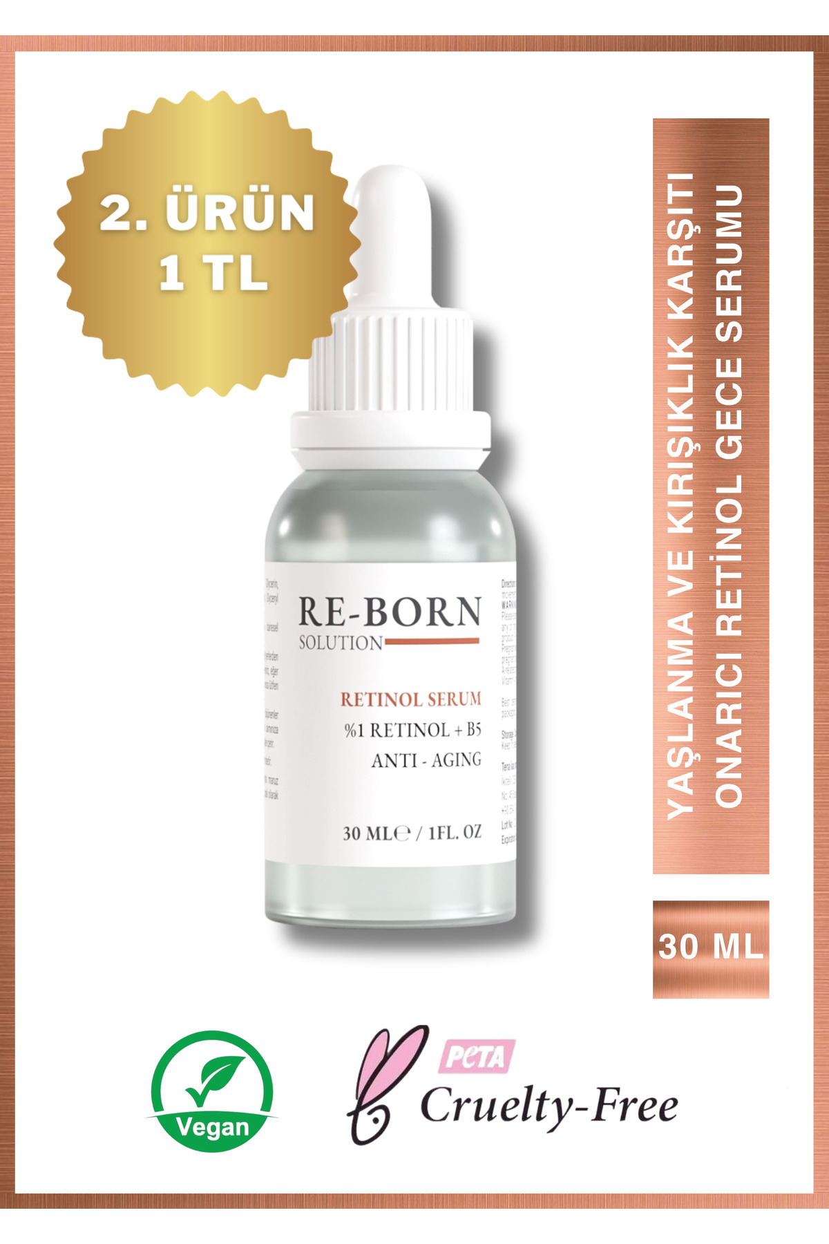 Re-Born Solution Anti-Aging and Anti-Wrinkle Repairing Retinol (Vitamin A) Night Serum 30 Ml (1% Retinol + B5)