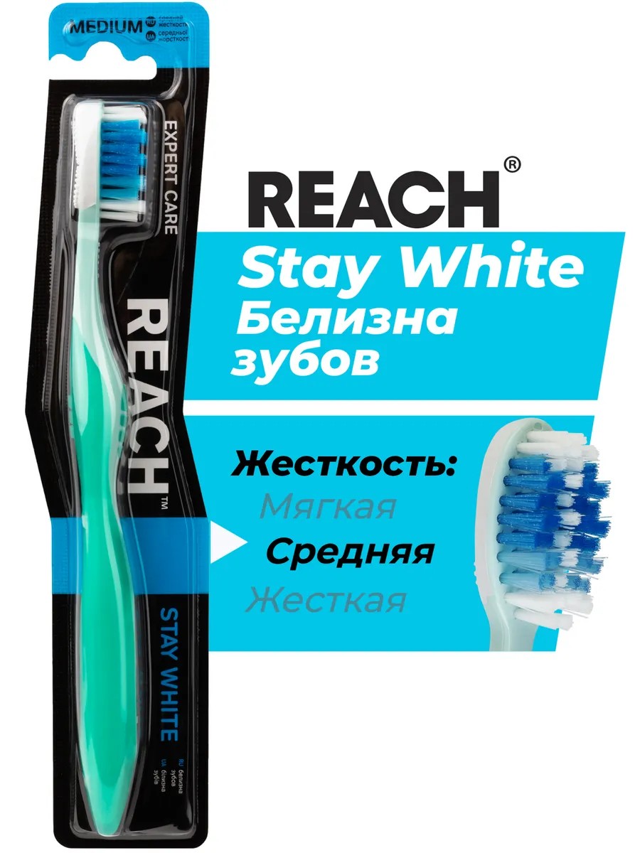 REACH (Рич) Зубная щетка Stay White Белизна зубов, средняя жесткость.