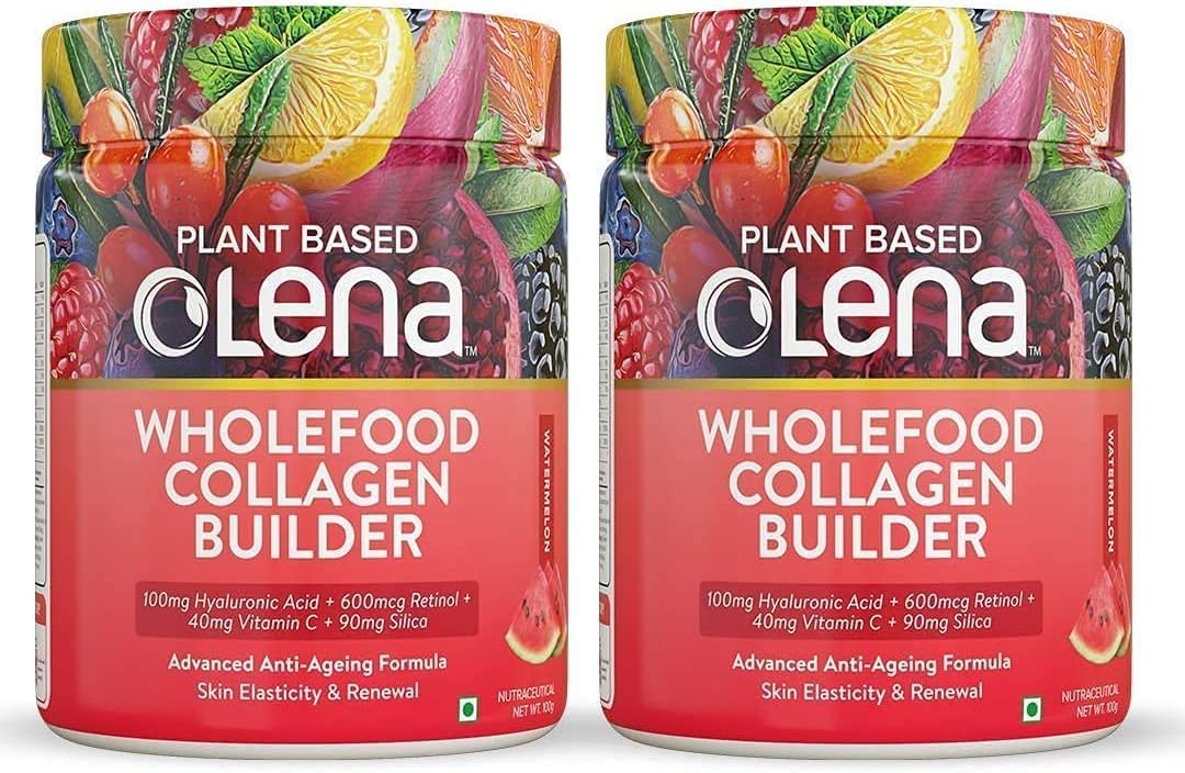 Why take animal-derived collagen when your body is designed to generate its own collagen? Olena offers a plant-based solution tailor-made to stimulate your body's inherent collagen production. An inside-out approach! At Olena we educate people about plant-based nutrition and help add important ingredients to everyone's diet in an easy and convenient way. 100 mg hyaluronic acid 600 mcg retinol 40 mg vitamin C for advanced skin repair, skin elasticity and renewal.PROTEIN BLEND: Olena's Whole Food Collagen contains vegetarian protein in every serving. Protein helps with skin elasticity and growth. ONE INGREDIENT WILL NOT DO THE TRICK - Our whole food collagen uses high-quality ingredients such as biotin, acerola, sea buckthorn and hyaluronic acid. PLANT-BASED BIOTIN - An essential superfood to promote hair, skin and nail strength. HYALURONIC ACID - Our whole food plant-based collagen uses hyaluronic acid and biotin to build collagen for smooth, supple skin. PLANT-BASED COLLAGEN - 1000mg Hyaluronic Acid 600mcg Retinol 40mg Vitamin C for youthful skin, elasticity and renewal.QURA Gebaseerd collageen voor huidelasticiteit en vernieuwing- 50 porties (watermeloen) 200 gm (Pack van 2) Waarom zou je collageen van dierlijke oorsprong innemen als je lichaam is ontworpen om zijn eigen collageen te genereren? Olena biedt een plantaardige oplossing, op maat gemaakt om de inherente collageenproductie van uw lichaam te stimuleren. Een inside-out aanpak! Bij Olena informeren we mensen over plantaardige voeding en helpen we op een gemakkelijke en gemakkelijke manier belangrijke ingrediënten toe te voegen aan ieders dieet. 100 mg hyaluronzuur 600 mcg retinol 40 mg vitamine C voor geavanceerde huidherstel, elasticiteit van de huid en vernieuwing.EIWITBLEND: Olena's hele voedselcollageen bevat vegetarische eiwitten in elke portie. Eiwit helpt bij de elasticiteit en groei van de huid. ÉÉN INGREDIËNT ZAL DE TRUC NIET DOEN - Ons collageen voor hele voeding maakt gebruik van hoogwaardige ingrediënten zoals biotine, acerola, duindoorn en hyaluronzuur. BIOTIN OP PLANT-BASIS - Een essentieel superfood om de kracht van haar, huid en nagels te bevorderen. HYALURONZUUR - Ons plantaardig collageen voor hele voeding gebruikt hyaluronzuur en biotine om collageen op te bouwen voor een gladde, soepele huid. PLANT-GEBASEERDE COLLAGEEN - 1000mg Hyaluronzuur 600mcg Retinol 40mg Vitamine C voor jeugdige huid, elasticiteit en vernieuwing.