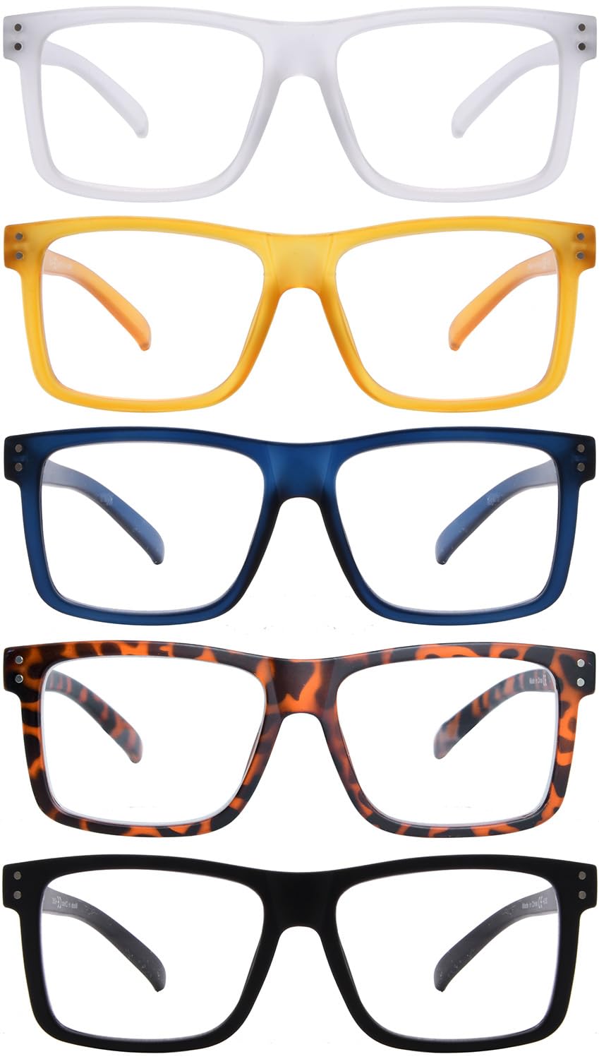 Reading Glasses 5 pack Oversized Square Readers for Women Men (+1.25) 5 Pairs Mix-r2142 1.25 x