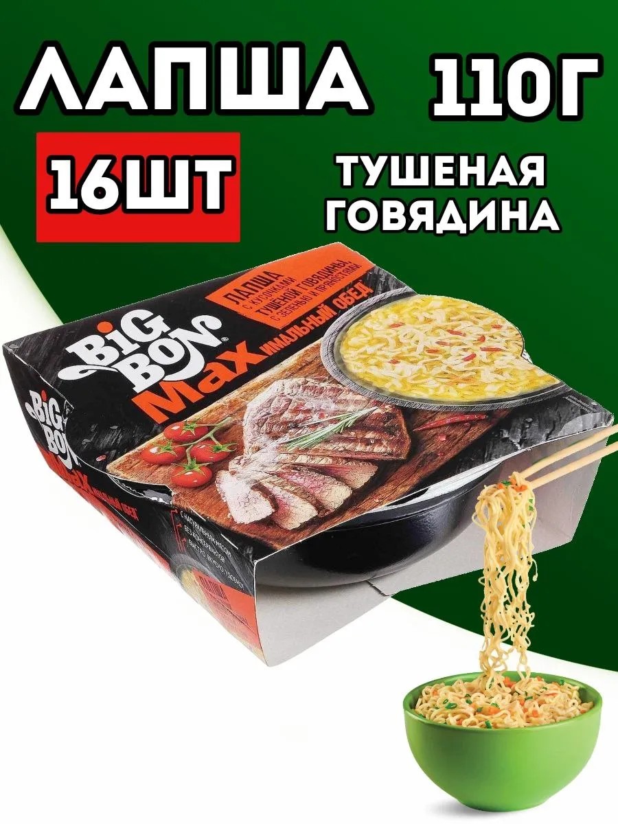 BigBon разработан для поклонников азиатской кухни. Легкий процесс готовки превращает каждый прием пищи в удовольствие. Соединение лапши, тушеной говядины и изысканных специй напоминает блюда wok-ресторана. Компактная упаковка не занимает много места и сохраняет продукт свежим.