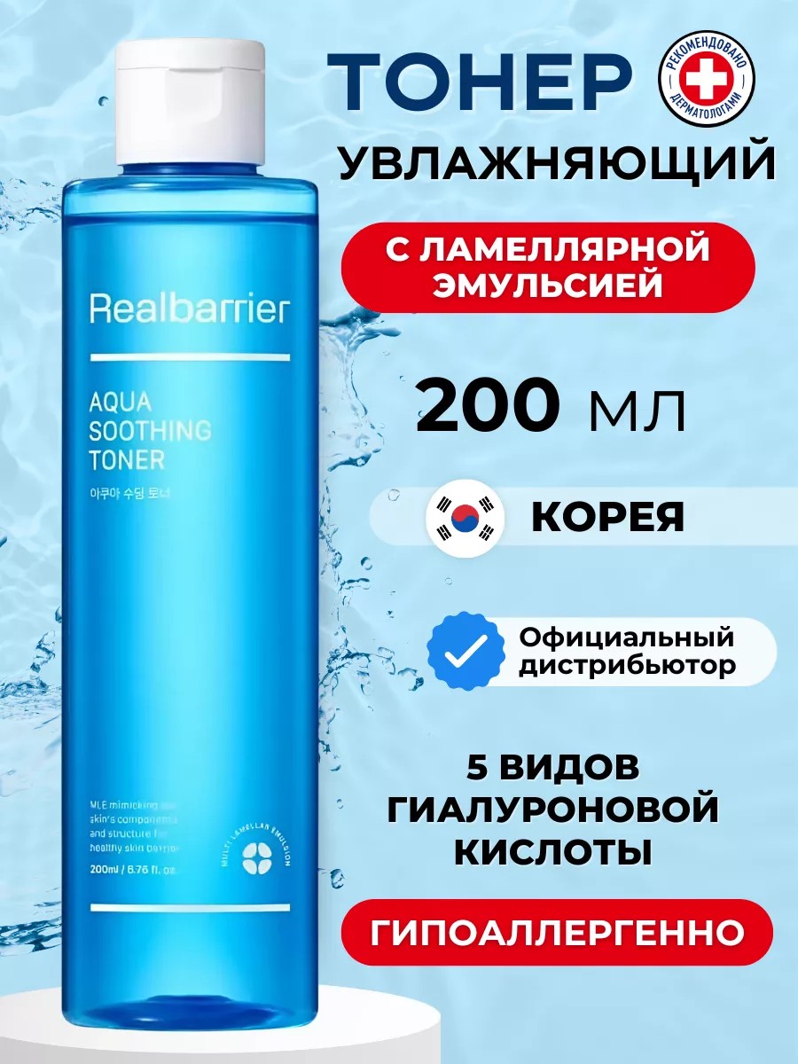 Успокаваиющий тонер для лица Real Barrier Aqua Soothing Toner сохраняет влагу в коже до 48 часов, укрепляет её защитный барьер, успокаивает покраснения и раздражения, снижает реактивность.