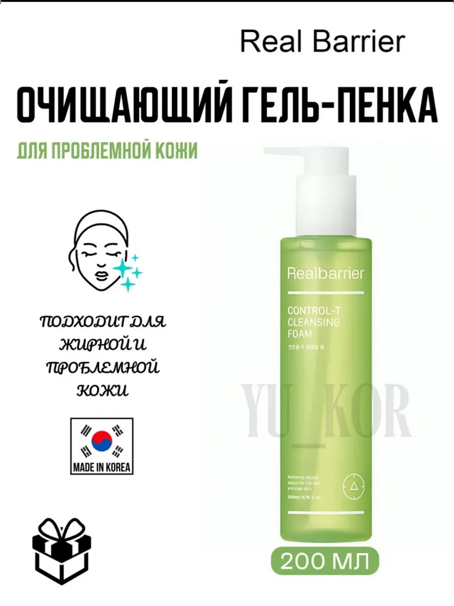 Real Barrier Control-T Cleansing Foam - это нежный гель для умывания и снятия макияжа, который не раздражает и не сушит даже самую чувствиетльную кожу. Средство глубоко и бережно очищает кожу, удаляя с поверхности кожи отмершие клетки, излишки себума и другие загрязнения. Клинически доказано: гель снижает жирный блеск на 60%, уменьшает выработку себума на 32%. Очищает кожу от мелкой пыли на 98%. Продукт обладает нейтральным рН-балансом 4.5-6.5, поэтому не раздражает кожу.