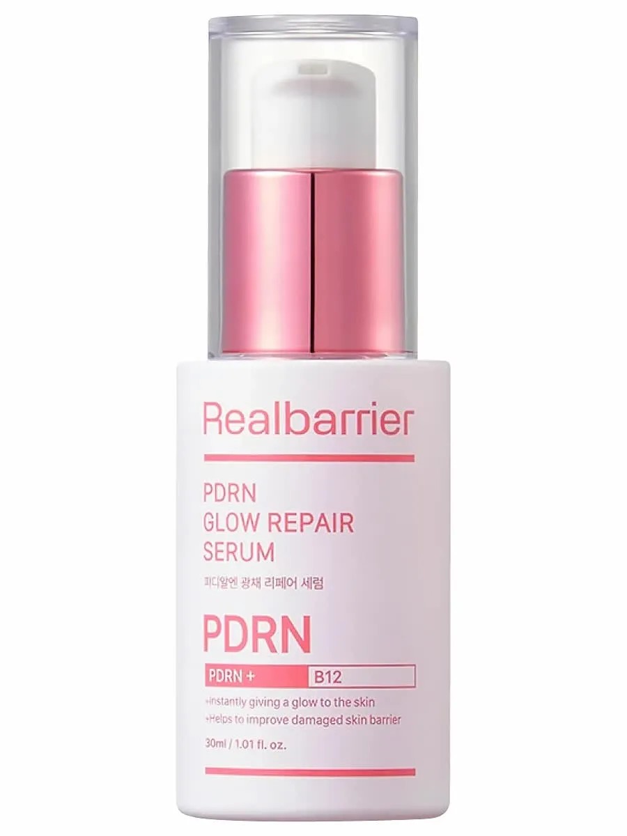 Увлажняющая сыворотка с ПДРН и экзосомами PDRN Glow Repair Serum от Real Barrier (оригинал) эффективно восстанавливает и укрепляет кожу, восполняет недостаток драгоценной влаги в клетках, повышает плотность, упругость и эластичность тканей, предотвращая преждевременное старение, избавляет от тусклости и следов усталости, смягчает огрубевшие участки и придаёт красивое свечение коже изнутри. Это инновационное средство для ухода из Кореи содержит формулу с двумя видами растительного PDRN, тремя церамидами и экзосомами, которая обеспечивает глубокое увлажнение, восстановление и защиту. Глутатион и ниацинамид в помогают бороться с признаками старения, делая кожу более упругой и гладкой, способствует выравниванию тона кожи, осветляют пигментные пятна и уменьшает следы постакне.