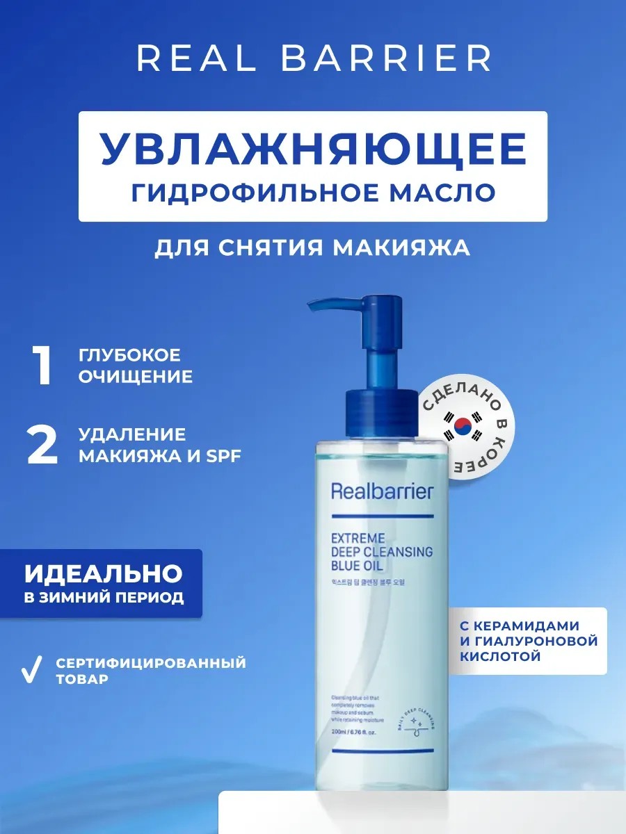 Real Barrier Extreme Deep Cleansing Blue Oil – лучшее решение для снятия макияжа и умывания лица. Это гидрофильное масло (Корея) станет вашим незаменимым помощником в уходе за кожей, обеспечивая ей максимальное увлажнение и питание.