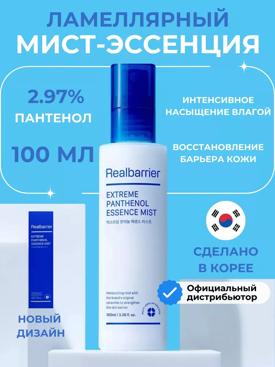 The Real Barrier Extreme Panthenol Essence Mist, a moisturizing toner and mist for face and body with a lamellar emulsion, hydrates even the driest and most dehydrated skin prone to sensitivity. The mist gently cares for skin prone to atopy and dermatitis. Korean cosmetics offer the most effective formulas for skin care, including problematic skin. The key component of this product, a lamellar emulsion, restores the integrity of the skin, accelerates the healing of redness and irritation, and relieves redness and itching. The product is enriched with 2.97% panthenol, which effectively softens and soothes the skin and acts as a powerful antioxidant. Chamomile oil relieves inflammation and irritation. Centella asiatica derivatives strengthen blood vessel walls, conceal redness, and provide the skin with a powerful boost of hydration. The mist can be used instead of toner, as a body spray, and to set makeup. It's safe for the whole family, suitable for both women's and men's skin care. Choose high-quality lamellar cosmetics for beautiful skin.