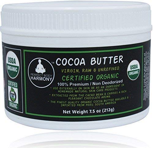 Real CERTIFIED Organic Cocoa Butter BPA Free Jar Premium Unrefined Non-Deodorized Extracted From The Cacao Bean Rich Chocolate Aroma! Naturally Rich In Antioxidants! THE BEST! 7.5 oz JAR 7.5 Ounce (Pack of 1)