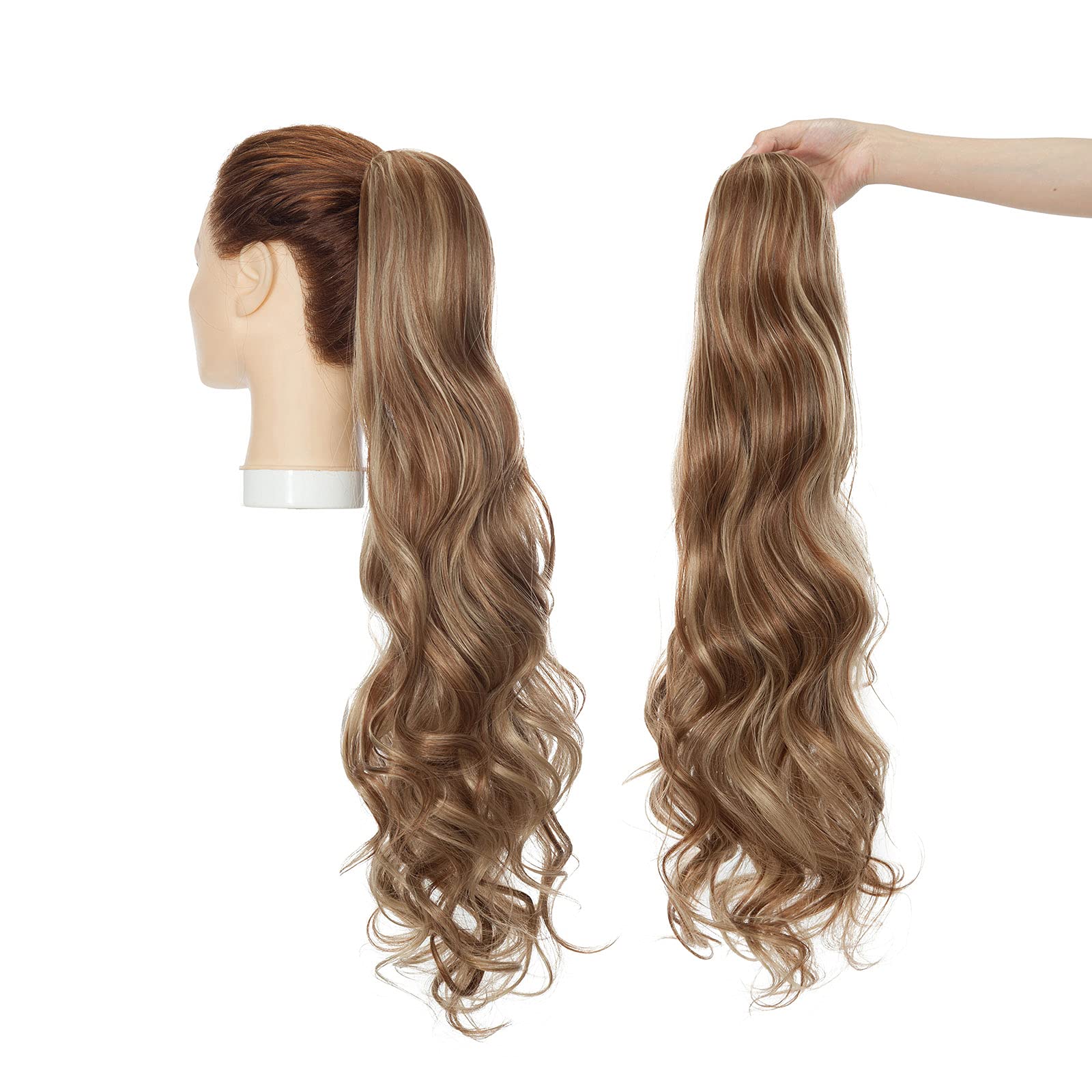 Real Fashion Drawstring Ponytail Hair Extensions Long Wavy Ponytail Blonde Black Brown 24" Clip in Hairpiece for Daliy Party Use Light Brown & Ash Blonde