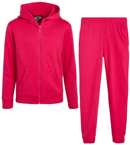 Real Love Girls' Jogger Set - 2 Piece Basic Fleece Solid Full Zip Hoodie and Sweatpants (Size: 7-16) Hot Pink 10-12