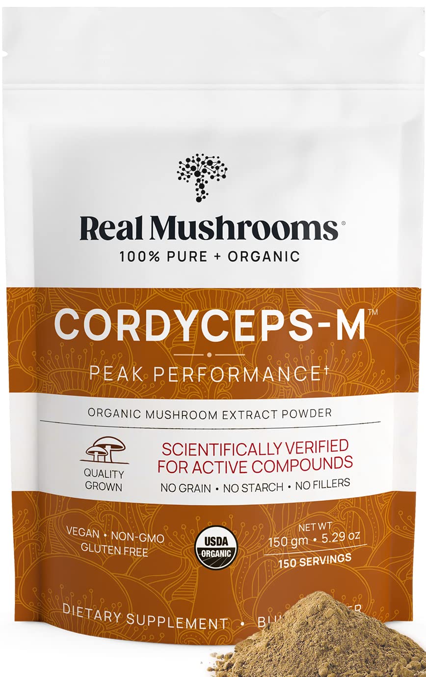 Real Mushroom Cordyceps Mushroom Powder - Cordyceps Mushroom Energy and Performance - Organic Cordyceps Powder with Beta-Glucans, Vegan Supplement, Non-GMO, 150 Servings