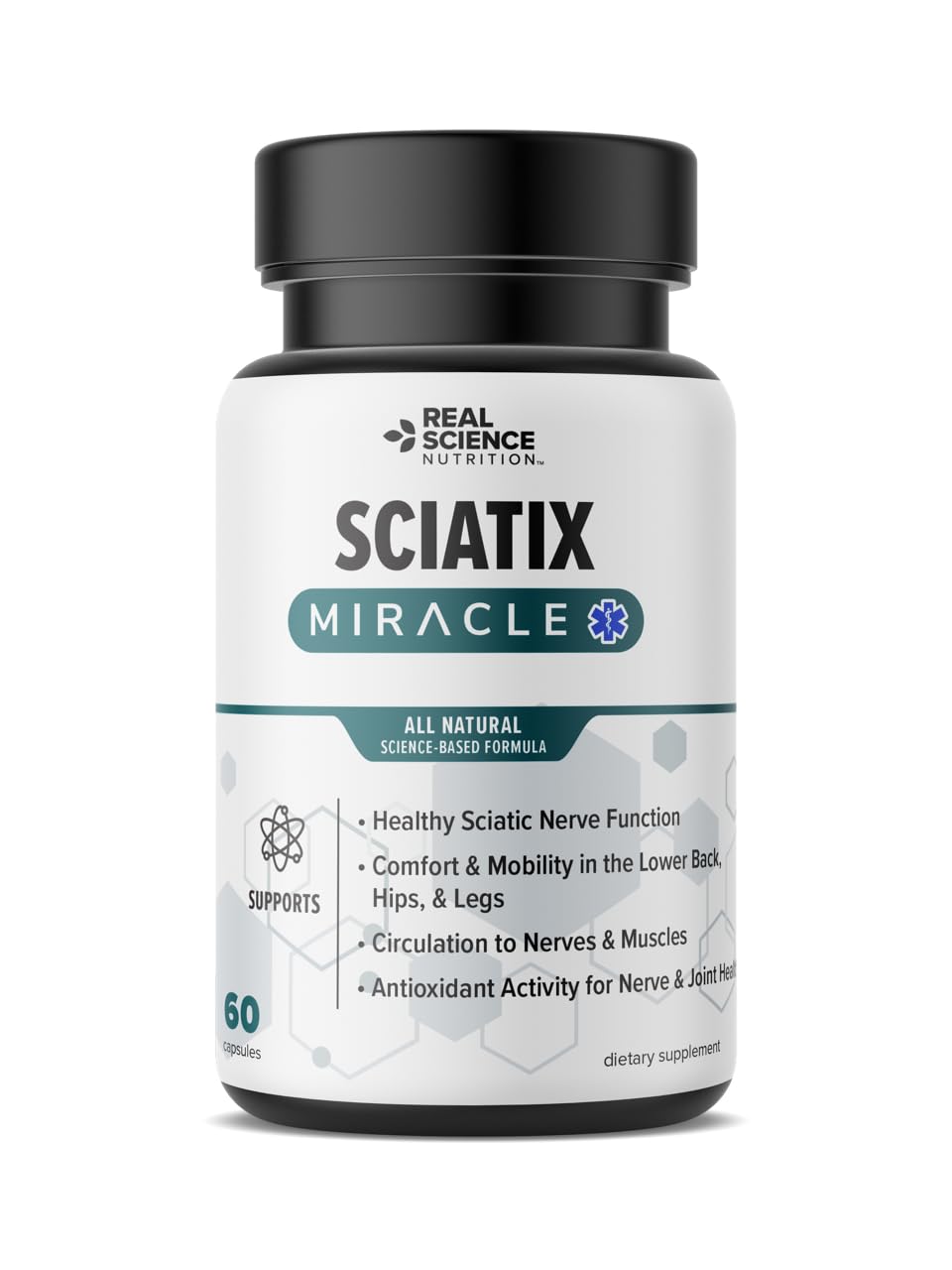Real Science Nutrition Sciatix Miracle is a Nitric Oxide Supplement for Nerve Health Support Circulation & Mobility Promotes Back Hip & Leg Comfort 60 Capsules