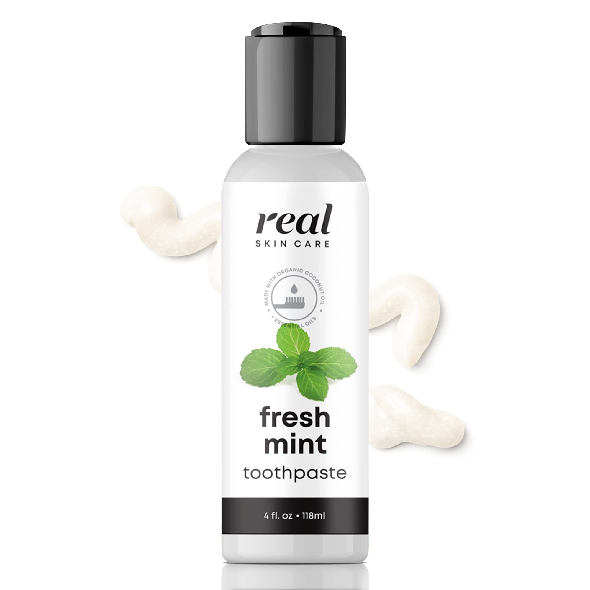 Real Skin Care Coconut Toothpaste | Handmade in The USA | Fresh Mint | All Natural Organic Fluoride Free for Healthy Smiles | Flavored for Adults & Kids With Essential Oils