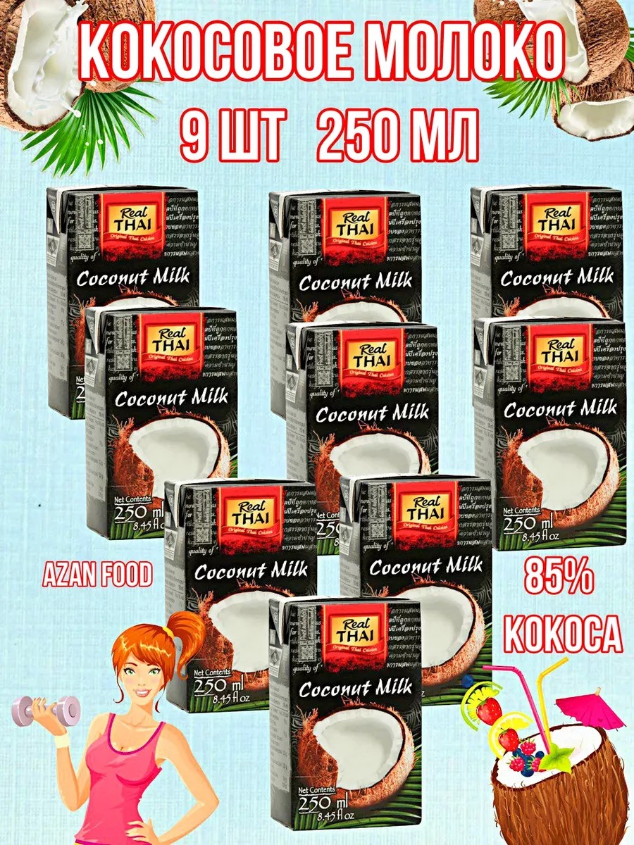 Real Thai Кокосовое молоко растительное без сахара 17-19% - 9 шт