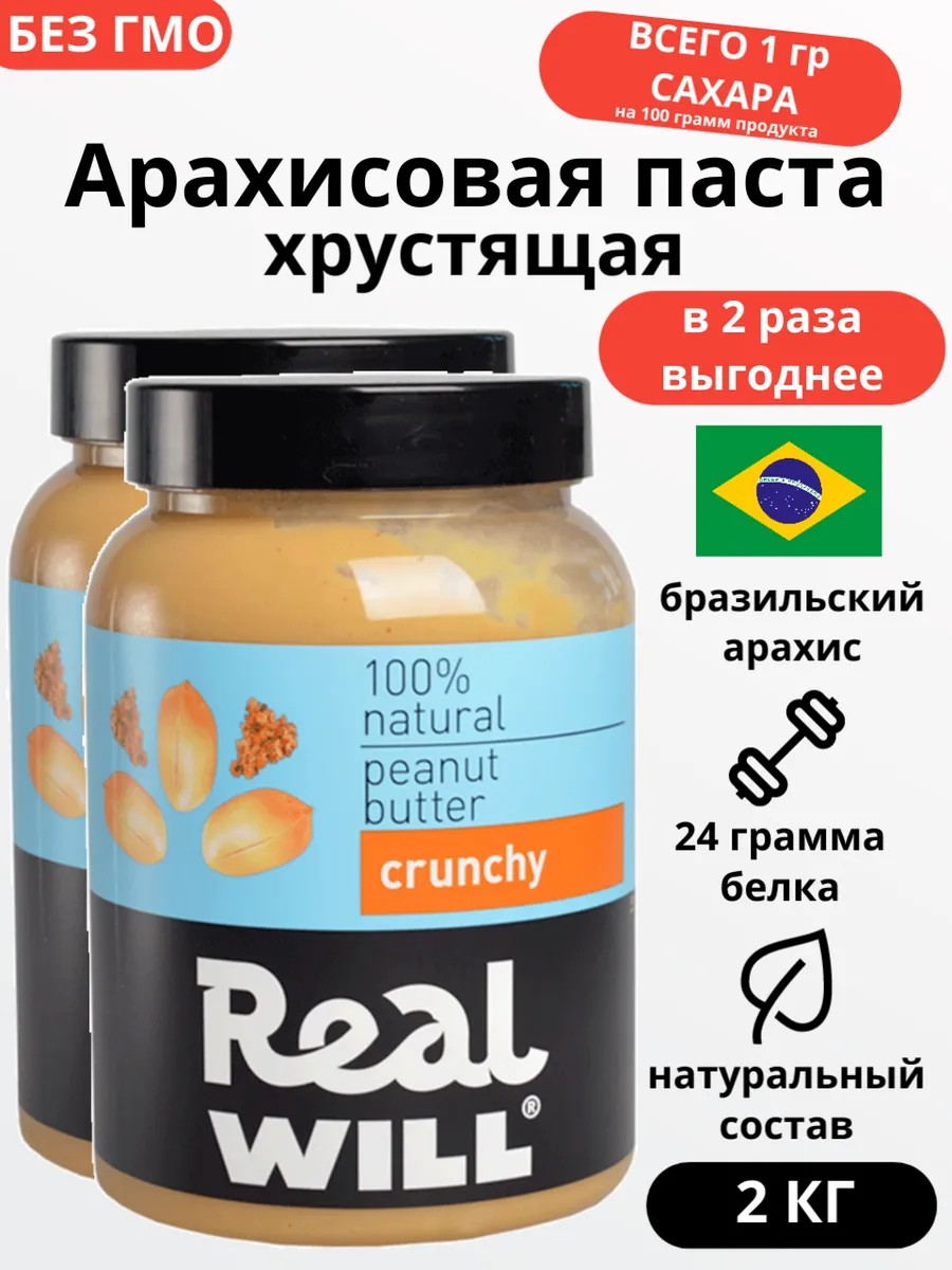 Real Will Арахисовая паста хрустящая с кусочками арахиса 2 по 1кг