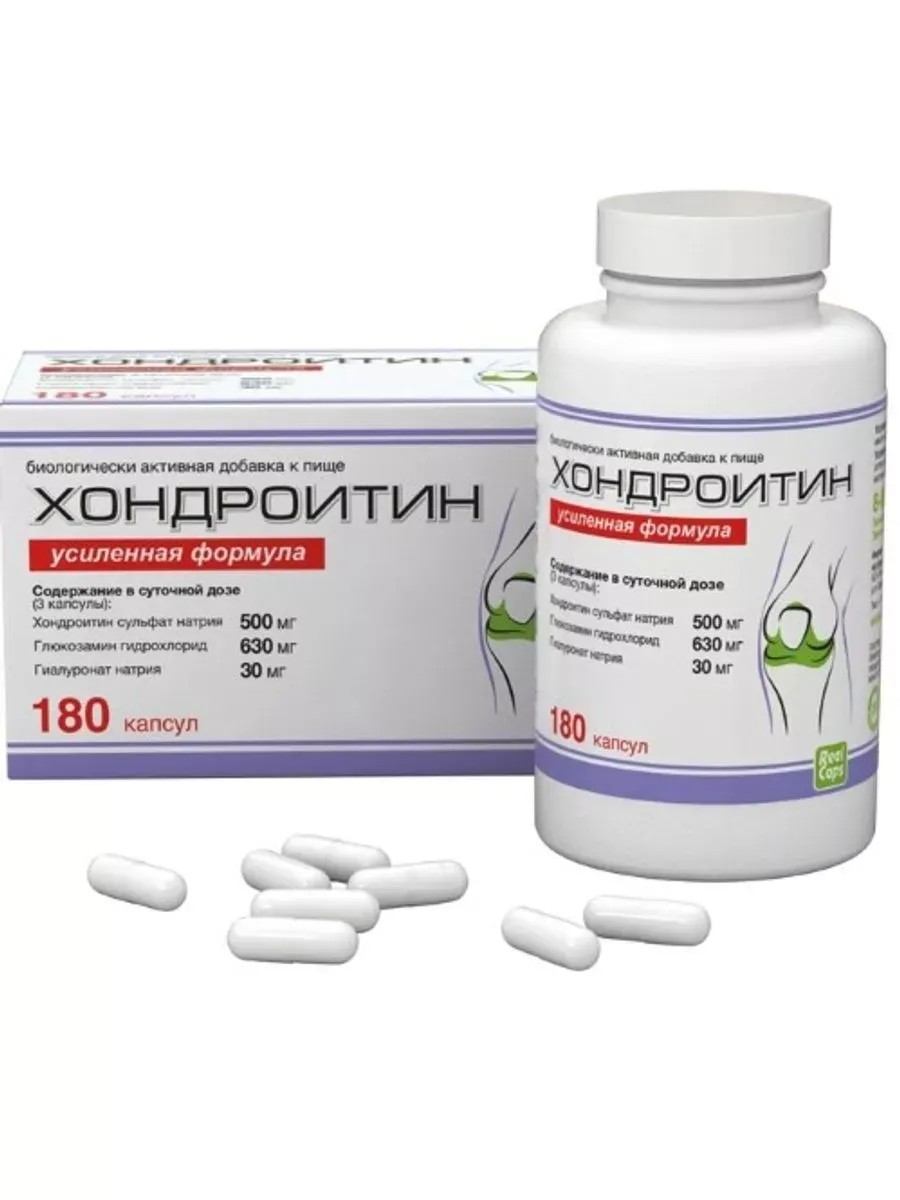 хондроитин усиленная формула n180 по 417мг. Состав: Хондроитин сульфат натрия - 500мг, глюкозамин г/х - 630мг, гиалуронат натрия - 30мг