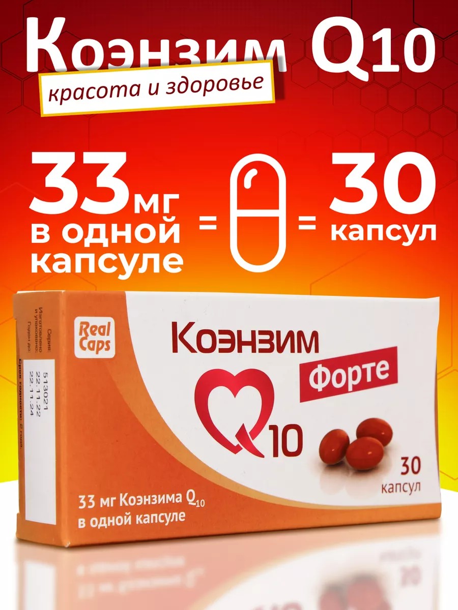 1 capsule of "Coenzyme Q10 Forte" contains 110% (33 mg) of the required daily requirement of a healthy body for Coenzyme Q10 (does not exceed the upper tolerable intake level)*.