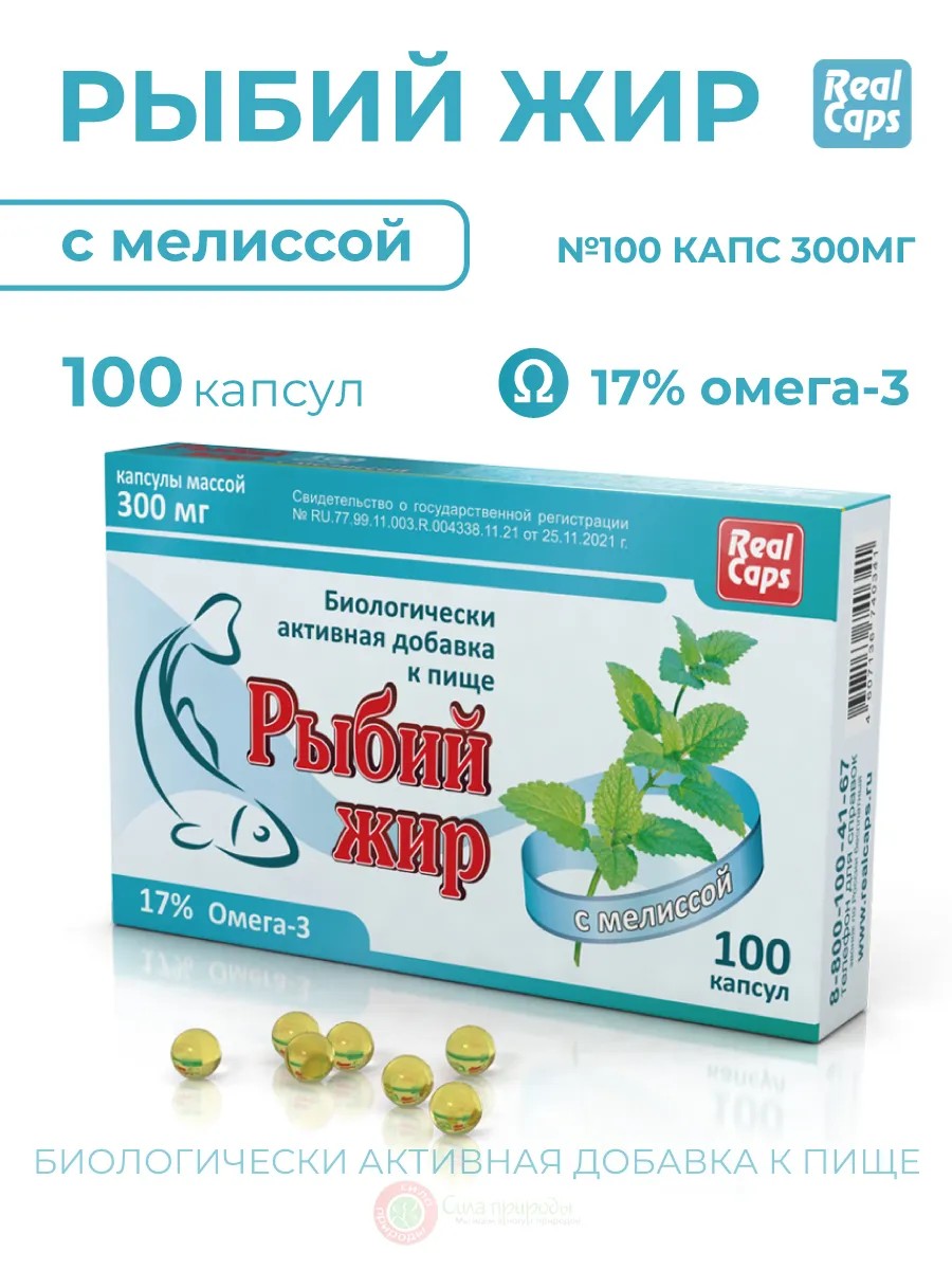 РеалКапс Рыбий жир с мелиссой Омега-3, 100 капсул