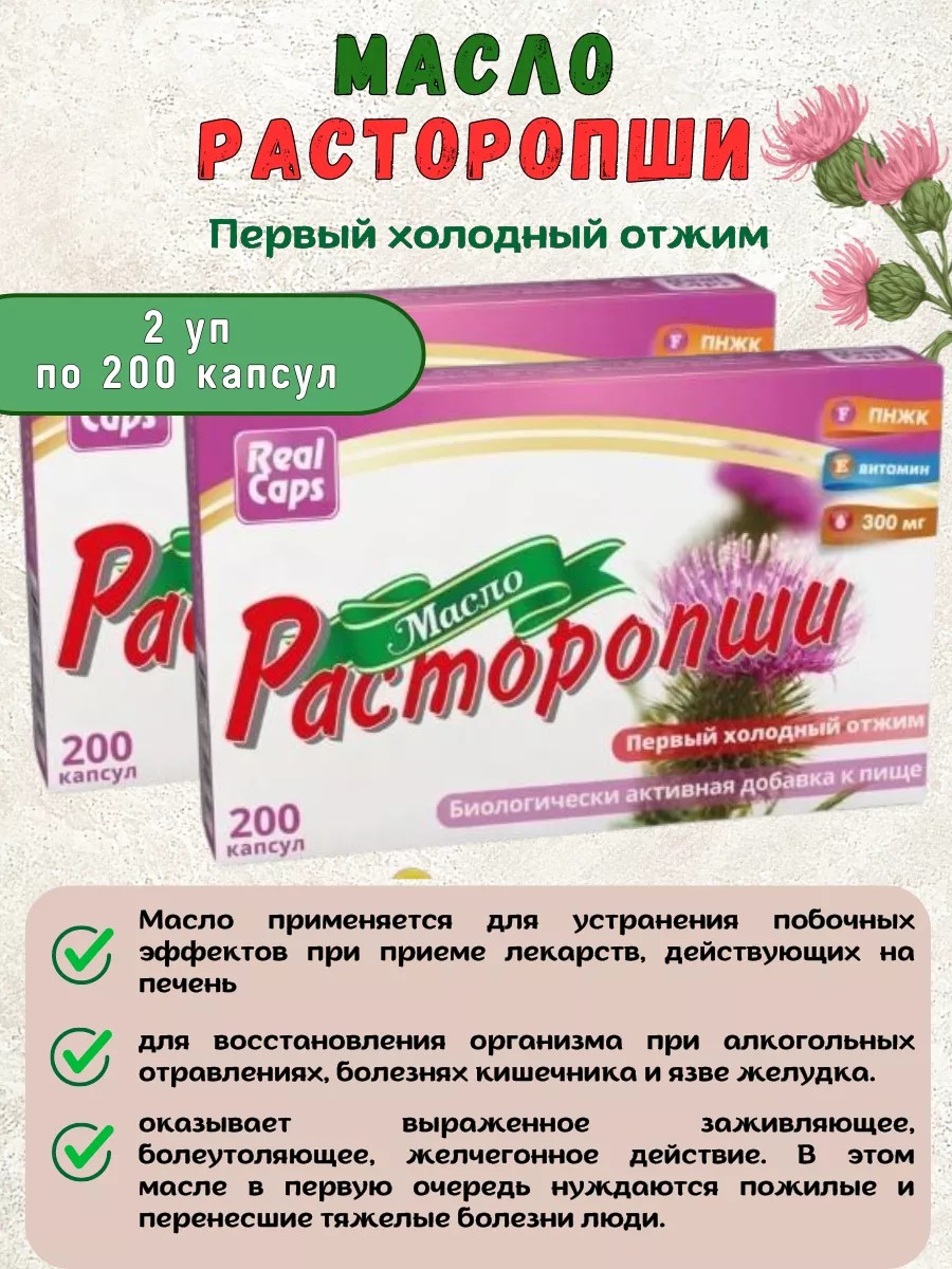 | Комплектация | Масло расторопши первый холодный отжим 2уп по 200 капсул |