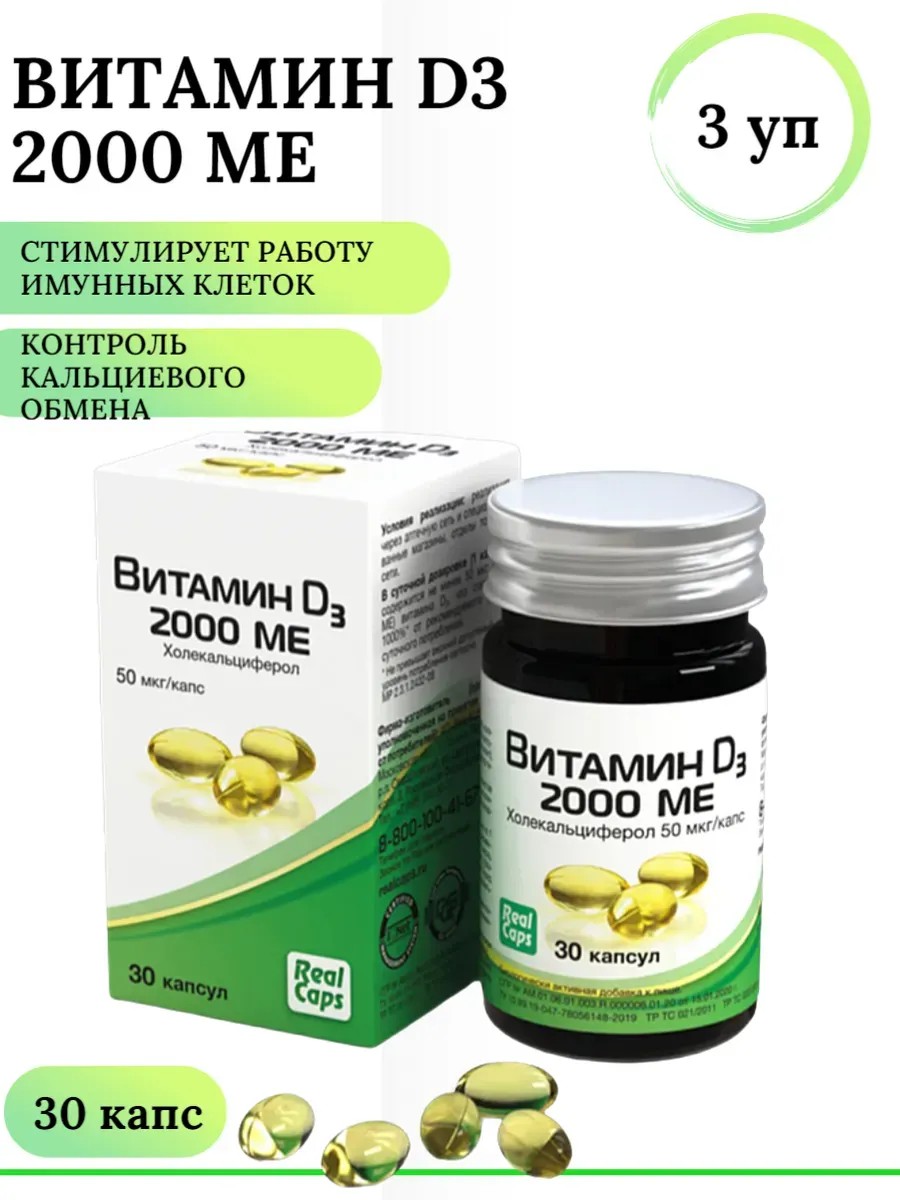 Витамин d3 2000 МЕ (холекальциферол) капсулы - это биологически активная добавка (БАД) к пище. Особенности препарата. Удобная дозировка: каждая капсула содержит 2000 МЕ витамина Д3. Высокая биодоступность: масляные формы витамина Д усваиваются лучше по сравнению с другими формами. Натуральный состав: витамин Д получен из овечьей шерсти, в составе нет красителей, подсластителей, форма-образователей. Витамин Д укрепляет иммунитет, нервную, сердечно-сосудистую, мышечную системы, способствует укреплению костей и зубов, полезен в профилактике атеросклероза, ожирения, диабета II типа, старческого слабоумия, глаукомы, злокачественных новообразований.