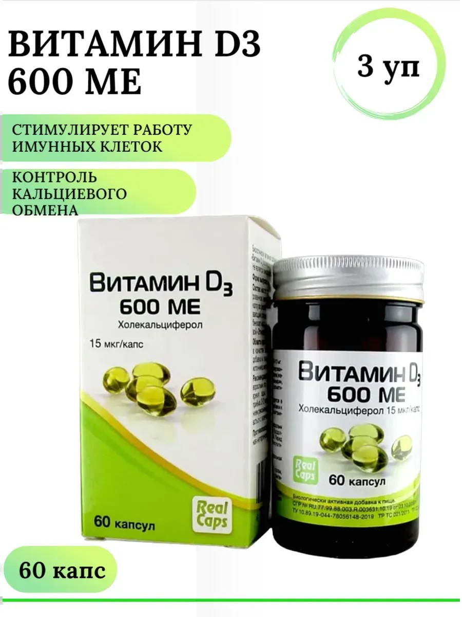 РеалКапс Витамин Д (холекальциферол) 600 ME капс. № 60/ 3 уп