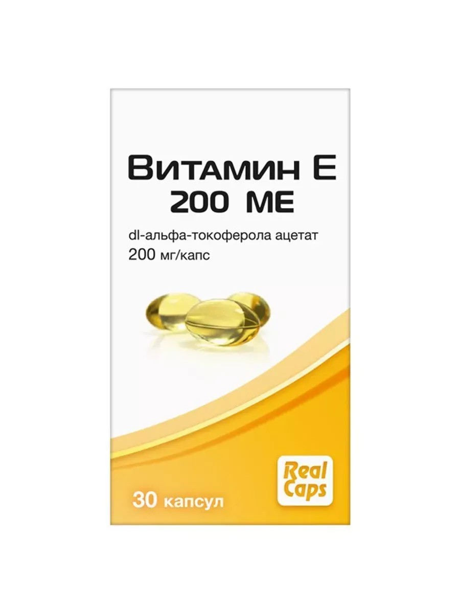витамин е 200 ме n30 капс по 570мг /реалкапс/. Состав: масло растительное (подсолнечное), альфа-токоферола ацетат 200МЕ, оболочка капсулы (желатин, глицерин), вода, бензоат натрия, этилванилин (ароматизатор)