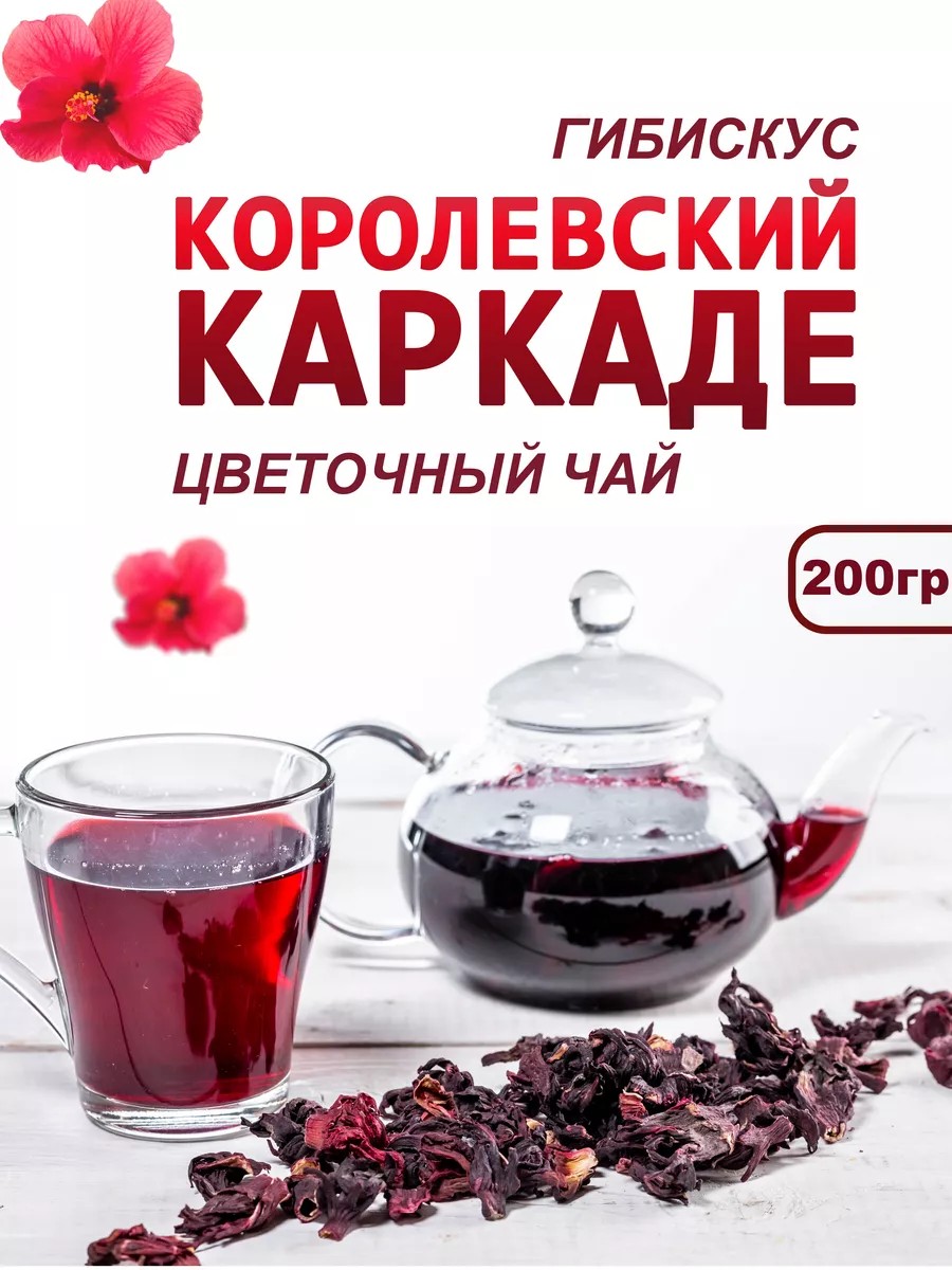 Каркаде изготавливают из лепестков Суданской розы (Гибискуса), крупный лист - необычный травяной напиток из высушенных прицветников суданской розы, которая относится к роду гибискусов. Египтяне называли его напитком фараона, дарующим бессмертие и силу. Они считали, что заварка восстанавливает энергию и утоляет жажду во время сильной жары. Но, помимо этого, она имеет еще множество полезных функций, в том числе и расширение сосудов или противораковый эффект.