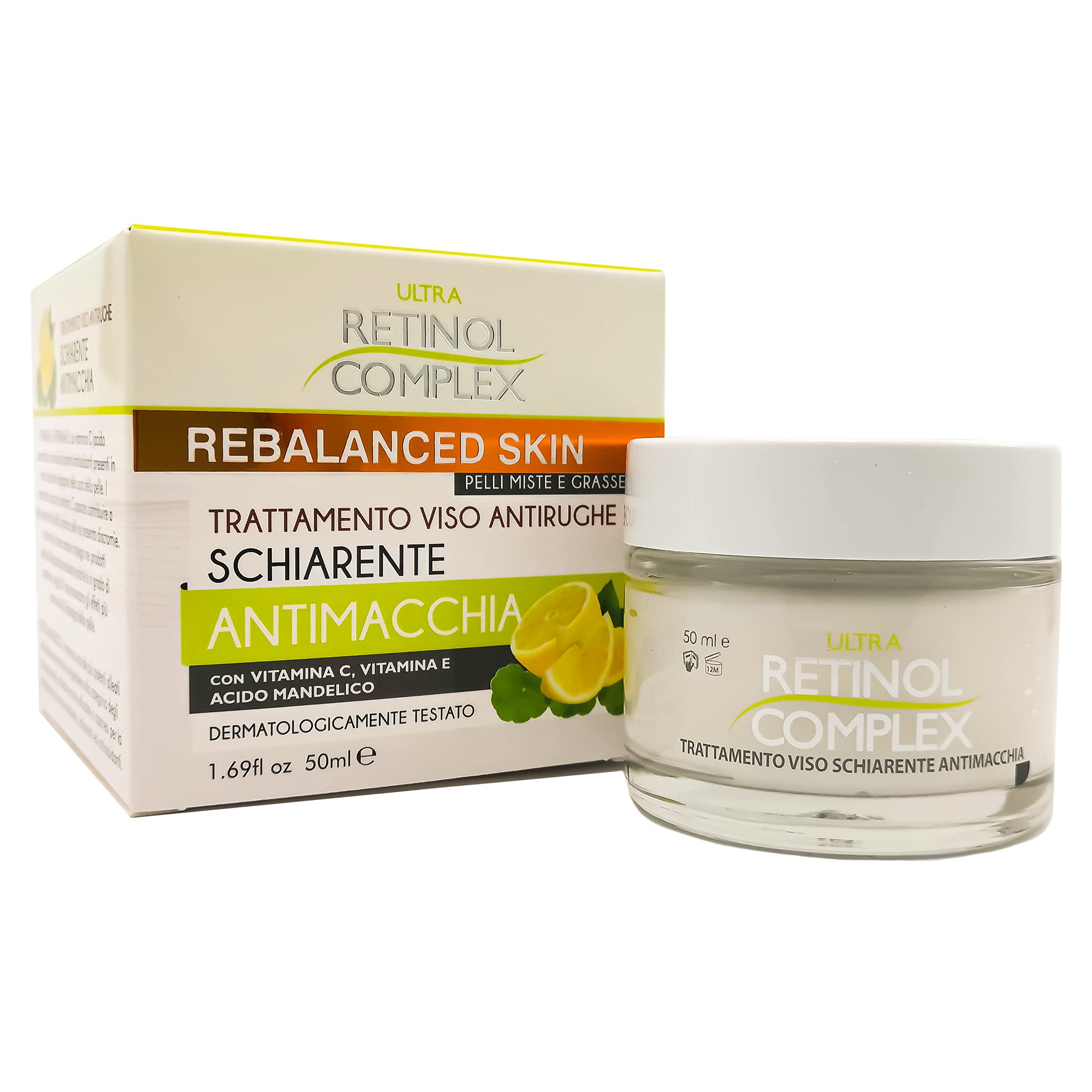 The Rebalanced Skin Line from RETINOL COMPX is an effective answer for anyone looking to cleanse or balance their skin, reducing problems such as acne, oily skin, blemishes and rosacea. We have researched a wide choice of balancing face creams to meet all your needs. In short, the ideal cream for every skin. When used regularly, the cream with sulfur and thermal water accelerates the rate of cell regeneration and gives the skin more vitality. The light texture penetrates the skin and is quickly absorbed, providing an immediate feeling and effectiveness. Result on the skin: wrinkles are reduced. Improving sound and skin regeneration. The skin is nourished by responsible moisture care. The skin looks smoother and silkier. Instructions for use: Apply every evening to face and neck, perfectly cleansed and dry. perform circular movements to promote absorption and achieve more results.Application: Apply to perfectly cleansed and dry face and neck every evening. Perform circular movements to promote absorption and enjoy more results. Skin-friendly results: wrinkles are reduced. Improving the tone and renewal of the skin. The skin becomes tighter due to an intensive moisture supply. The skin appears more elastic and silky. The cream with sulfur and thermal water, when used regularly, accelerates the cell regeneration rate and gives the skin more vitality. The light texture penetrates into the skin and is quickly absorbed, providing an immediate feeling of pleasant and effective feeling. The Rebalanced Skin Line from RETINOL COMPLEX is an effective answer for those who cleanse or compensate their skin by reducing problems such as acne, oily skin, blemishes and rosacea. We have developed a wide range of balanced facial creams to meet all needs. In short, the ideal cream for every skin.R.C Anti-rimpelcrème voor gezichtsbehandeling, vuilafstotend, rebalanced skin 0237 De Rebalanced Skin Line van RETINOL COMPX is een effectief antwoord voor iedereen die zijn huid wil reinigen of uitbalanceren, waardoor problemen zoals acne, vettige huid, vlekken en couperose worden verminderd. We hebben een grote keuze aan balancerende gezichtscrèmes onderzocht, zodat je aan alle behoeften kunt voldoen. Kortom, voor elke huid de ideale crème. De crème met zwavel en thermisch water versnelt bij regelmatig gebruik de snelheid van de celregeneratie en geeft de huid meer vitaliteit. De lichte textuur dringt in de huid en trekt snel in en zorgt zo voor een direct gevoel en effectiviteit. Resultaat op de huid: rimpels worden verminderd. Verbetering van geluid en huidregeneratie. De huid wordt strakker verzorgd door een verantwoordelijke vochtverzorging. De huid ziet er soepeler en zijdeachtiger. Gebruiksaanwijzing: Elke avond op gezicht en hals aanbrengen perfect gereinigd en droog. cirkels bewegingen uitvoeren om de absorptie te bevorderen en meer resultaten te bereiken.Toepassing: Elke avond perfect gereinigd en droog gezicht en hals aanbrengen. Voer cirkelvormige bewegingen uit om de absorptie te bevorderen en van meer resultaten te genieten. Huidvriendelijke resultaten: rimpels verminderen zich. Verbetering van de toon en vernieuwing van de huid. De huid wordt strakker door een intensieve vochttoevoer. De huid werkt elastischer en zijdeachtig. De crème met zwavel en thermisch water, versnelt bij regelmatig gebruik de celregeneratiesnelheid en geeft de huid meer vitaliteit. De lichte textuur dringt in de huid en trekt snel in en zorgt voor een direct gevoel van aangenaam en effectief gevoel. De Rebalanced Skin Line van RETINOL COMPLEX is een effectief antwoord voor degenen die hun huid reinigen of compenseren door problemen zoals acne, vettige huid, vlekken en couperose te verminderen. Wij hebben een groot aantal evenwichtige gezichtscrèmes ontwikkeld, zodat we aan alle behoeften kunnen voldoen. Kortom, voor elke huid de ideale crème.