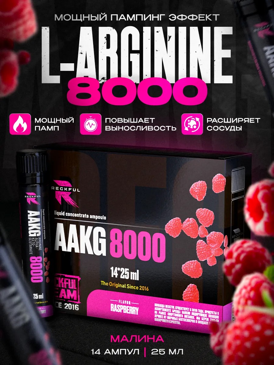 | Комплектация | Reckful L Arginine AAKG 8000 Liquid Малина - 14 ampoules |