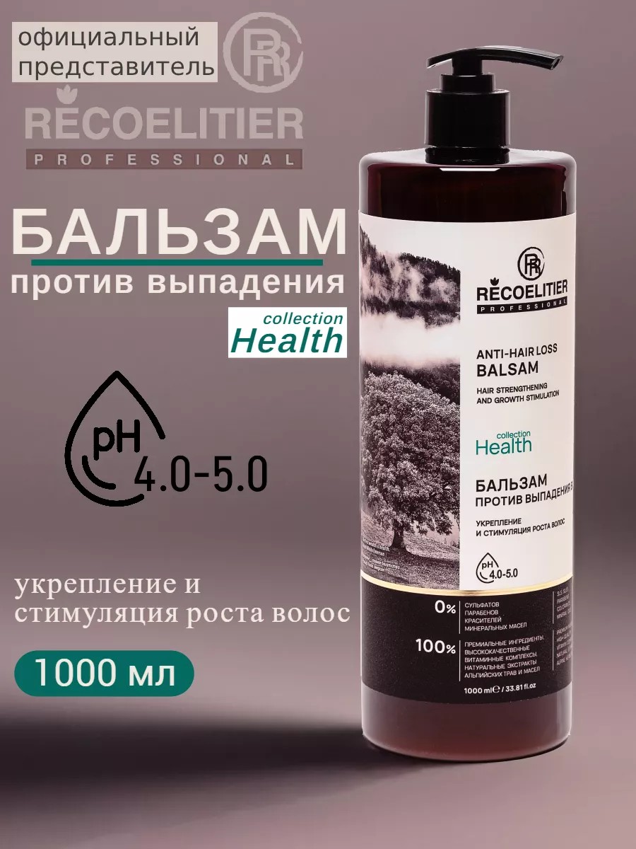 Профессиональный БАЛЬЗАМ Recoelitier Professional ПРОТИВ ВЫПАДЕНИЯ ВОЛОС на 1000 мл обладает уникальным составом без сульфатов и парабенов на основе натуральных ингредиентов, оказывает выраженное укрепляющее действие на волосяные луковицы. Натуральные компоненты, входящие в его состав, эффективно восстанавливают структуру поврежденных волос, интенсивно питают ослабленные корни и увлажняют кожу головы. Продлевает фазу активного роста волос, останавливает выпадение, придает волосам плотность и блеск. Пиритион цинка в составе шампуня борется с преждевременной сединой, выпадением волос, улучшает внешний вид волос, хорошо снимают зуд, раздражения и высыпания, хорошо увлажняют и смягчают кожу. Аргановое масло быстро восстанавливает утраченную влагу, сокращает ломкость и сечение. Масло миндаля питает кожу головы, способствует росту волос, а также смягчает пряди и защищает их от обезвоживания, придает блеск и при этом не утяжеляет. Масло Ши питает и увлажняет волосы, борется с секущимися кончиками. Д-Пантенол облегчает расчёсывание волос, закрывает кутикулу волоса и защищает от механических повреждений. Натуральные растительные экстракты альпийских трав обогащают бальзам, предоставляя волосам дополнительные питательные вещества для здоровья и красоты. Экстракт подорожника укрепляет волос, ускоряет рост, борется с посеченными кончиками. Подорожник предотвращает появление перхоти, увеличивает объем волос и придает им блеск. Экстракт вербены альпийской восстанавливает баланс секреции кожи головы, дарит силу и блеск жирным волосам. Экстракт брусники сокращает выпадение волос, избавляет от перхоти и делает волосы здоровыми и шелковистыми. Экстракт бессмертника увлажняет волосы, проникая в волосяные стержни, восстанавливает сухие, окрашенные или химически обработанные волосы, оживляя их, и возвращает им естественный блеск и эластичность. Экстракт тысячелистника предотвращает выпадение волос, оказывает лечебное воздействие на волосы, делая их красивыми и гибкими.