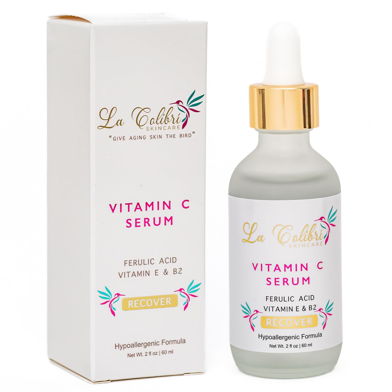 You’ll Smile at Your Reflection: Inspired by the hummingbird, or "la colibri" in Spanish, which represents resurrection in Native American lore, our products aim to revive your skin; Each USA-made formula is cruelty-free and has no SLS, SLES, Silicones, or other junk. From the Soil to Your Skin: Recover is a vegan vitamin c dark spot serum containing Stabilized Vitamin C, Ferulic Acid, Vitamin E, Hyaluronic Acid, and Jojoba Oil; Our vitamin c skincare serum is hypoallergenic and great for oily, dry, combo, and sensitive skin. Your Skin Won't Be Begging for Water: Hydration is a non-negotiable when it comes to skin health, and our vitamin c skin serum doesn't just stop at surface-level moisture; It delivers deep hydration, reaching the layers beneath to replenish. Get That Glow You've Been Seeking: "I love my dull, lifeless complexion," said no woman, ever; Besides effectively fighting the signs of aging, this vitamin c skin brightening serum will help give your skin the vibrancy and freshness it deserves. Advanced, Stable Form of Vitamin C: This face firming serum is made with a higher quality, more potent form of vitamin c, Sodium Ascorbyl Phosphate; This makes our face vitamin c serum highly stable, so it's much less prone to oxidation.