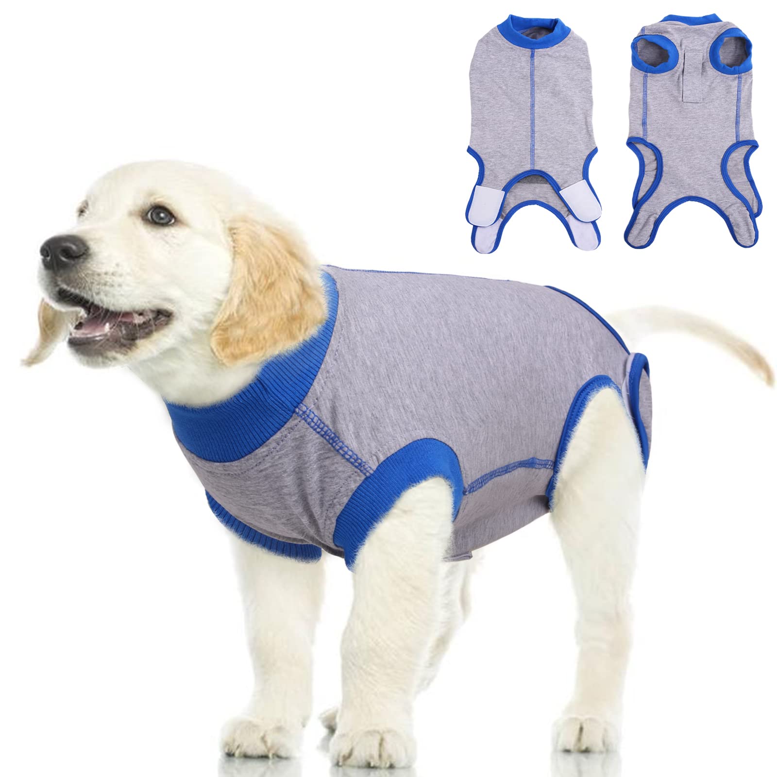 SizeWe have 6 sizes (XS M L XL 2XL), perfect for Labrador, Border Collie, puppy, dog, Bulldogge Terr Boston Terrier, Husky, Corgi, German Shepherd, poodle,Schnauzer, Bichon, Yorkie, Mops, Dachshund, French Bulldogge, Havanese, etc. Please note the size table and make sure you choose the right size before buying.For male and female petsThis surgical pet clothing for unisex dogs cats, hooks loop closed, back length adjustable, easy to put on or take off.Solve the rear part and roll up with the magical touch Closu band with is attached to the chest part, then dogs can pee freely.Replacement E neck band coneA perfect alternative to the Elisabethan collar, your recovery suit does not put up with your pets' body, your pet friends can lie down comfortably and do everything without feeling hinders, drinking water and eatingto take free.Elastic and breathableMade from pure cotton fabric, soft and skin -friendly, breathable, prevented skin allergies.Protect wound effectivelyThe full body cover prevents pets from licking their wounds, biting or scratching, keeping the wound dry, accelerating the healing and preventing secondary infections.This helps dogs to recover better after the operation.GRÖSSEWir haben 6 Größen zur Verfügung (XS S M L XL 2XL), perfekt für Labrador, Border Collie, Welpe, Hund, Bulldogge Terr Boston Terrier, Husky, Corgi , Deutscher Schäferhund, Pudel, Schnauzer, Bichon, Yorkie, Mops, Dackel, Französische Bulldogge, Havaneser usw. Bitte beachten Sie die Größentabelle und stellen Sie vor dem Kauf sicher, dass Sie die richtige Größe auswählen. FÜR Männliche und Weibliche HaustiereDiese chirurgische Haustierkleidung für Unisex-Hunde Katzen, Haken Schlaufe geschlossen, Rückenlänge verstellbar, leicht an- oder auszuziehen. Den hinteren Teil lösen und mit der magischen Berührung aufrollen Closuer Band mit ist am Brustteil befestigt, dann können Hunde frei pinkeln. Ersatz-E-Halsband KegelEine perfekte Alternative zum elisabethanischen Kragen, Der Erholungsanzug belastet den Körper Ihrer Haustiere nicht, Ihre Haustierfreunde können sich bequem hinlegen und alles tun, ohne sich behindert zu fühlen, Wasser zu trinken und Nahrung zu sich zu nehmen frei. Elastisches und AtmungsaktivesHergestellt aus reinem Baumwollgewebe, weich und hautfreundlich, atmungsaktiv, verhindert Hautallergien gewaschen. Wunde Effektiv SchützenDie Ganzkörperabdeckung verhindert, dass Haustiere ihre Wunden lecken, beißen oder kratzen, die Wunde trocken halten, die Heilung beschleunigen und Sekundärinfektionen verhindern. Dies hilft Hunden, sich nach der Operation besser zu erholen.Recovery Suit Hunde, Erholungsanzug Wundschutzanzüge Für Welpen Postoperative Pflege Schutzkleidung Wunden nach Chirurgie Anti-Lecken E-Halsband-Alternative nach Operationen(Grau, XS) XS A-Grau