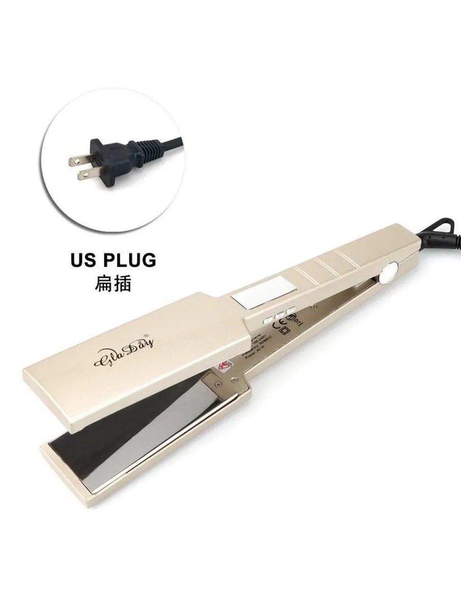 Выпрямитель для волос-широкие пластины, золотой, US вилка