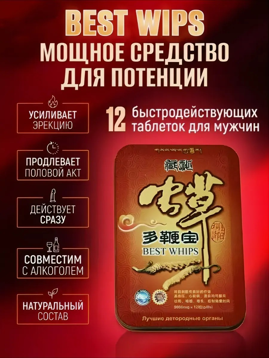 Best Whips - это натуральный стимулятор, предназначенный для повышения либидо и увеличения потенции у взрослых мужчин 18+. Кроме того, состав данного продукта представляет собой тщательно подобранный комплекс витаминов и минералов, оказывающих благотворное влияние на мужское здоровье в целом. Препарат для потенции для взрослых 18+ не имеет строгих противопоказаний, которые могли бы негативно повлиять на сердечную деятельность и общее самочувствие. Возбуждающие таблетки для мужчин не имеют побочных эффектов. Растительный комплекс бест випс способствует восстановлению эректильной функции и стимулирует мужской половой член. Этот мужской стимулятор обеспечивает постоянную жизненную энергию и яркий оргазм во время полового акта. Природный афродизиак для возбуждения поможет вам чувствовать себя увереннее в постели, продлить секс и наслаждаться предварительными ласками и сексуальными играми с партнершей. Регулярное применение этого бустера позволяет увеличить выработку тестостерона в организме, повысить либидо и сделать секс более продолжительным.